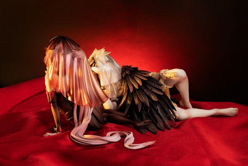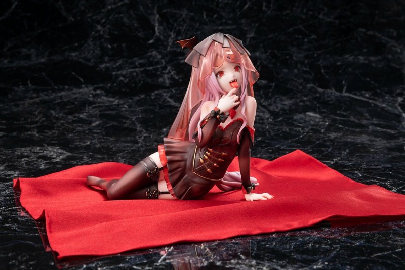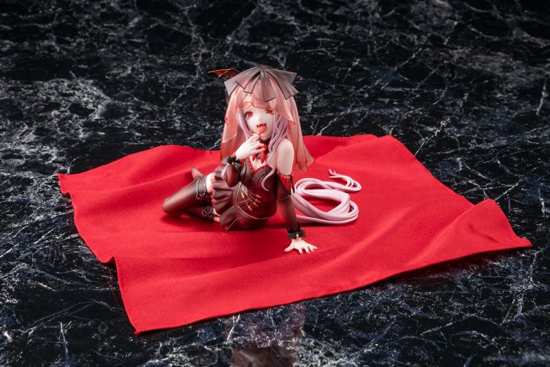 「KDcolle 夏提雅 新娘Ver.」1/7 比例 PVC 塗裝完成品,尺寸約高 110 mm,以原作繪師 so-bin 的特製插畫為基礎,將穿著魅惑禮服的夏提雅新娘造型立體化。伸出舌頭的嘴巴同時露出尖尖的牙齒,搭配略帶挑釁的笑容、放在舌頭上的手指等,整體散發危險的誘惑氛圍~單手撐著地板的姿勢,露出鑲著馬甲及蝴蝶結的禮服和性感的吊帶襪。頭紗和裙襬等處以半透明零件製作,台座採用真實布料,忠實呈現插畫的造型!