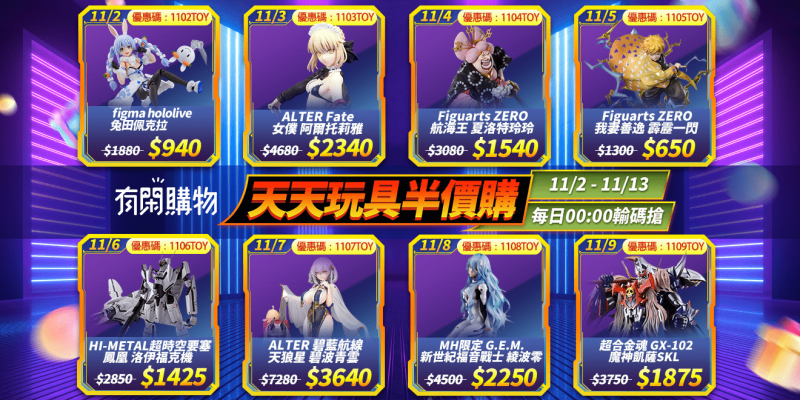 天天玩具半價,雙11當天買電玩玩具0元免運
