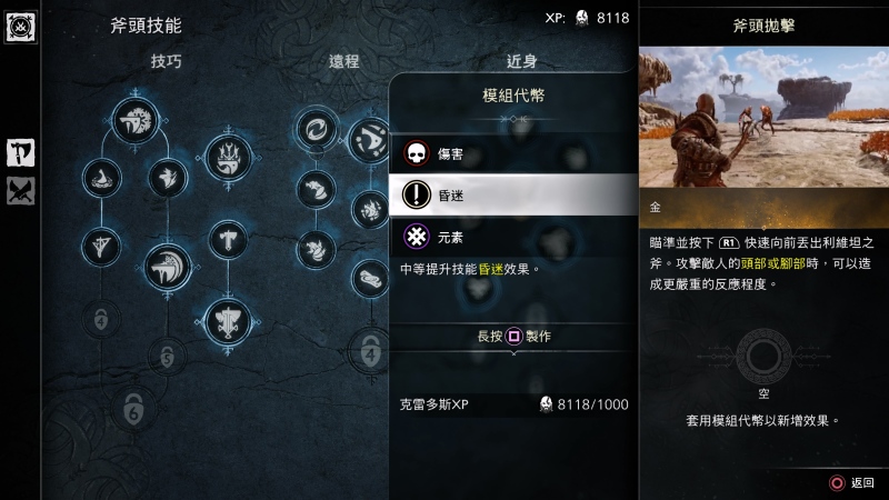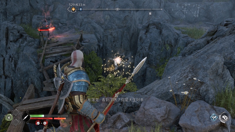 且不只是這樣而已,這把武器也是嶄新解謎的關鍵,它不只是能插進特定牆面當作跳台使用,還能藉由爆炸的特效炸穿某些擋路的岩石。且它也理所當然的,配有專用的符文攻擊和技能樹,筆者後半段除了特定屬性的敵人外幾乎都拿著這把矛來應付,真的是相當煞氣又強力的新武器。