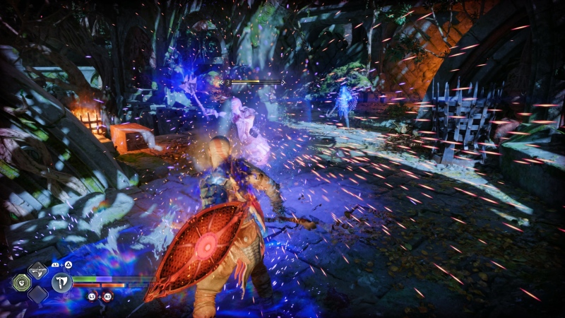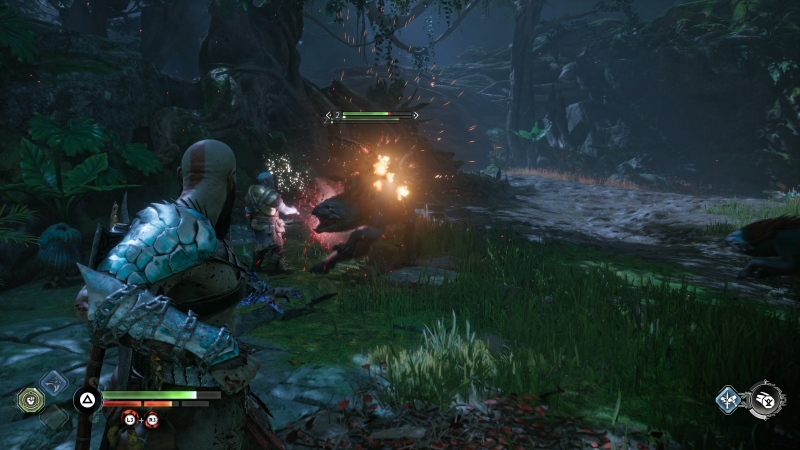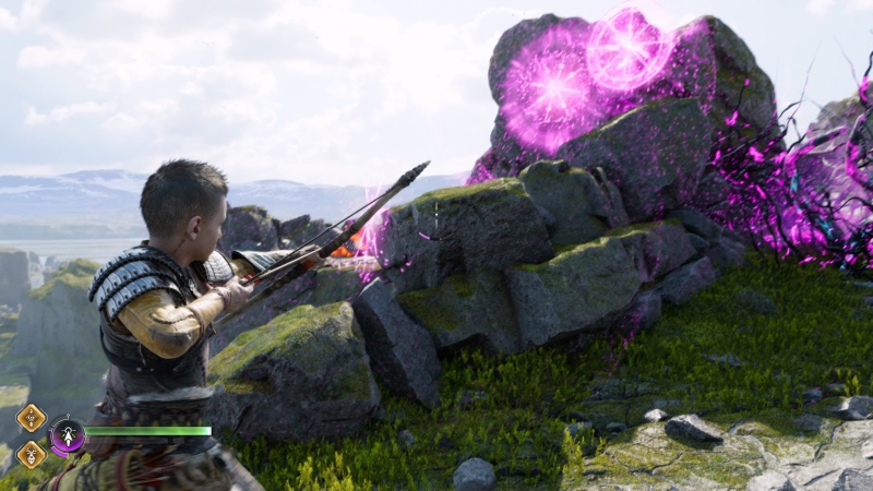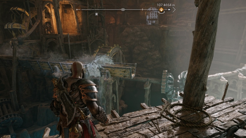而本次的解謎明顯改善了一代的體驗。解謎的手段變得更加豐富,且考驗眼力的設計也相對減少了一點。本次不除了需要用雙刃點火和用斧頭結冰等老套路之外,還增加了利用「紋章箭矢」、「音波箭矢」、以及新武器德羅普尼爾之矛解謎的環節。其中個人特別中意紋章箭矢的連線設計,他可以藉由在物體表面上刻劃法陣,藉此擴大或強化元素爆發的效果。光是這部分謎題的設計就足以讓人滿意。對於常常找東西找到暈頭轉向的玩家來說,這次的解謎環節想必會讓你更有動力去挑戰的。