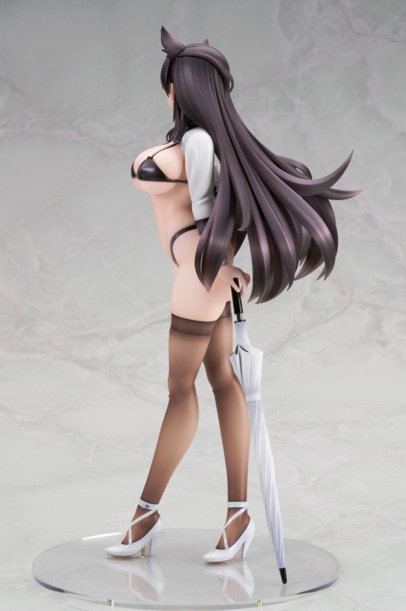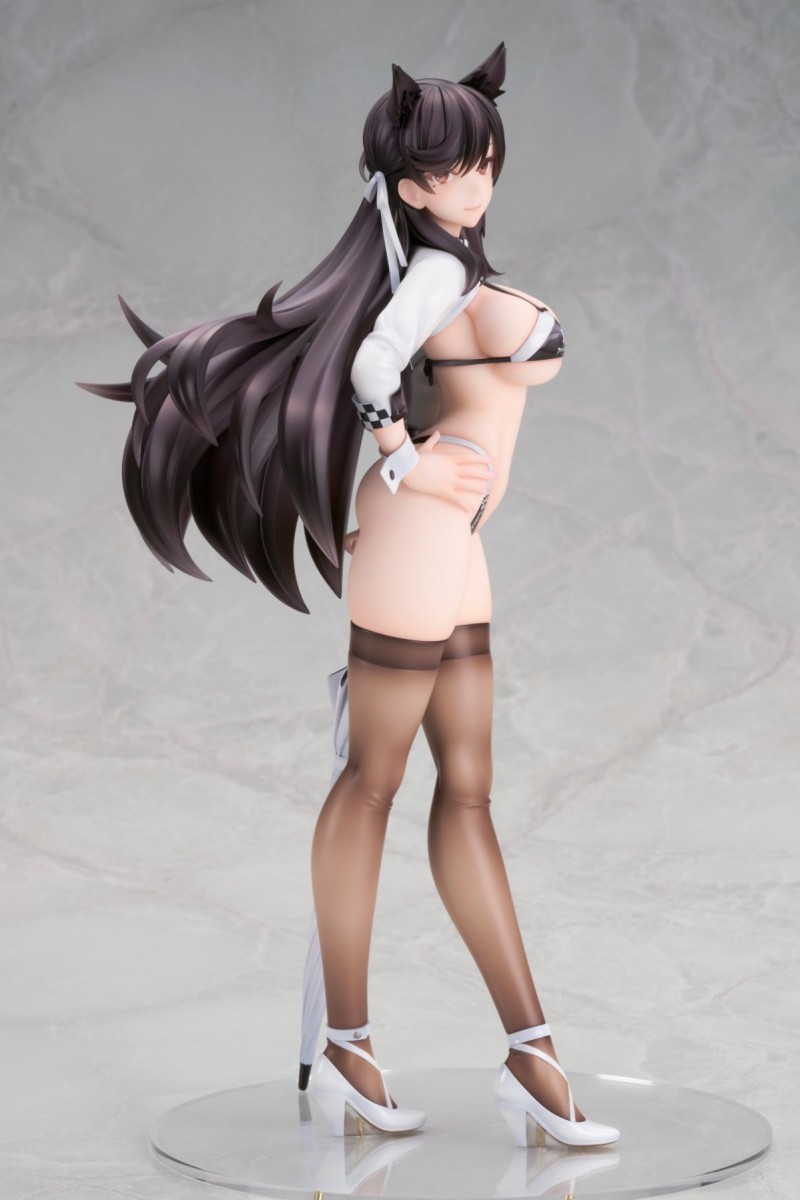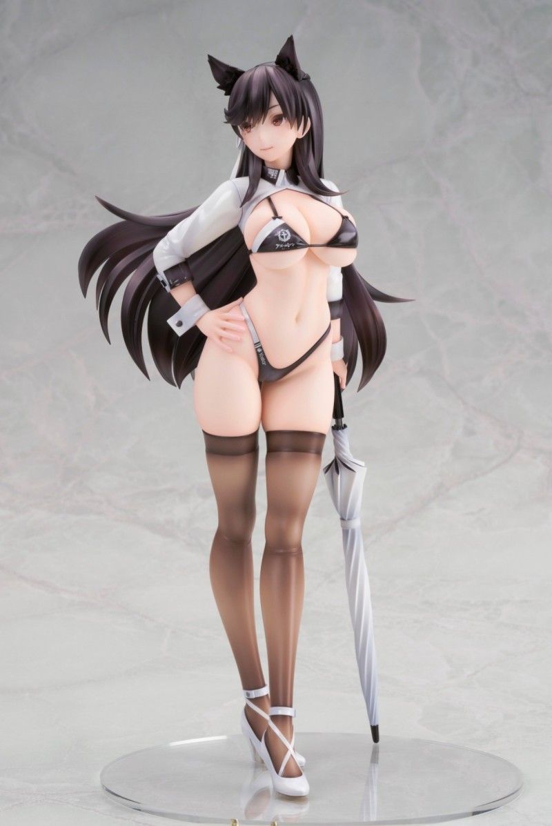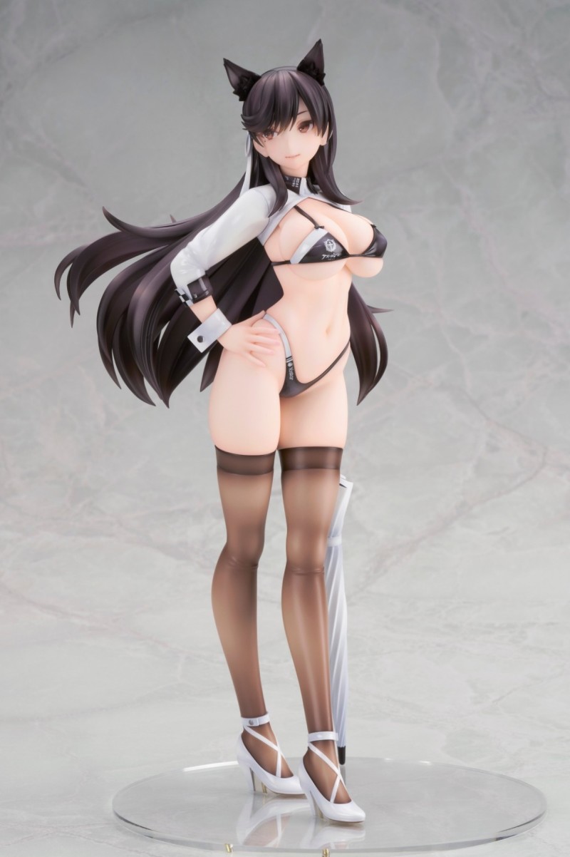 「ALTER 愛宕 巔峰時速ver. 1/7比例模型」,尺寸約高 26 公分,以遊戲中「巔峰時速」立繪的賽車服為造型,大膽再現性感爆表的賽車女郎風格服裝!露出度超高的比基尼,完全展現出巨大的雙峰,極少的布料除了在腰間、側乳勾勒出咬肉感,南半球也完全藏不住~耳朵搭配自信的插腰站姿,性感中帶有可愛的氣息,低丹數的黑絲展現極透膚的塗裝~魅力爆棚!