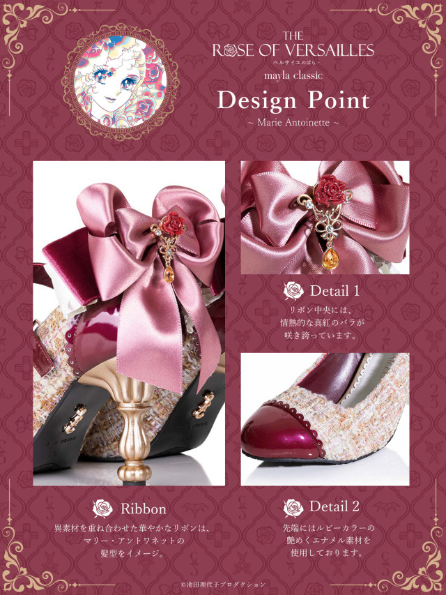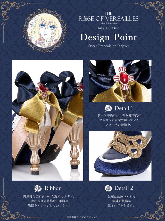 擅長各種華麗、纖細設計的大阪女鞋品牌 Mayla Classic ,這次則是和經典的漫畫作品《凡爾賽玫瑰》(ベルサイユのばら)合作,推出瑪麗安東尼與奧斯卡的鞋款!