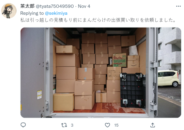 相信不少愛好模型的電電夥伴吧,在家山積無法解決的時候,如果遇到了需要搬家的時候,你都怎麼解決呢 ? 最近日本一位身為動漫狂熱者的推主,在搬家的時候遇到了困難,他請了搬家公司來估價自家搬家的預算時,當對方看到了他有如動漫店家的收藏,遭到了對方拒絕估價,請他轉移到更專業的搬家公司,讓推主哭笑不得,分享到推特上後也引起熱烈迴響。