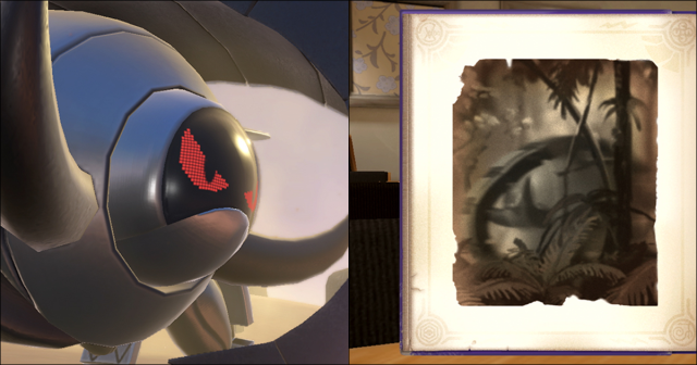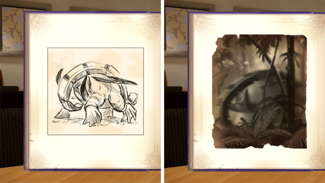 目前已公開的紀錄,在《朱之書》寫下了性格兇暴,被稱為「雄偉之牙」的古代種寶可夢「雄偉牙」,據說牠會利用巨大的身體和獠牙來襲擊探險隊,甚至還有人因此受到致命傷。