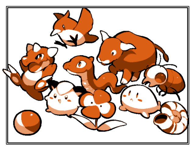 如下圖左上第一個就是草屬性寶可夢的樣貌,相信對於初代 GB 時代的朋友應該不陌生,當初建模的圖案較少,沒有像後期每個寶可夢都有自己的獨立的樣貌。