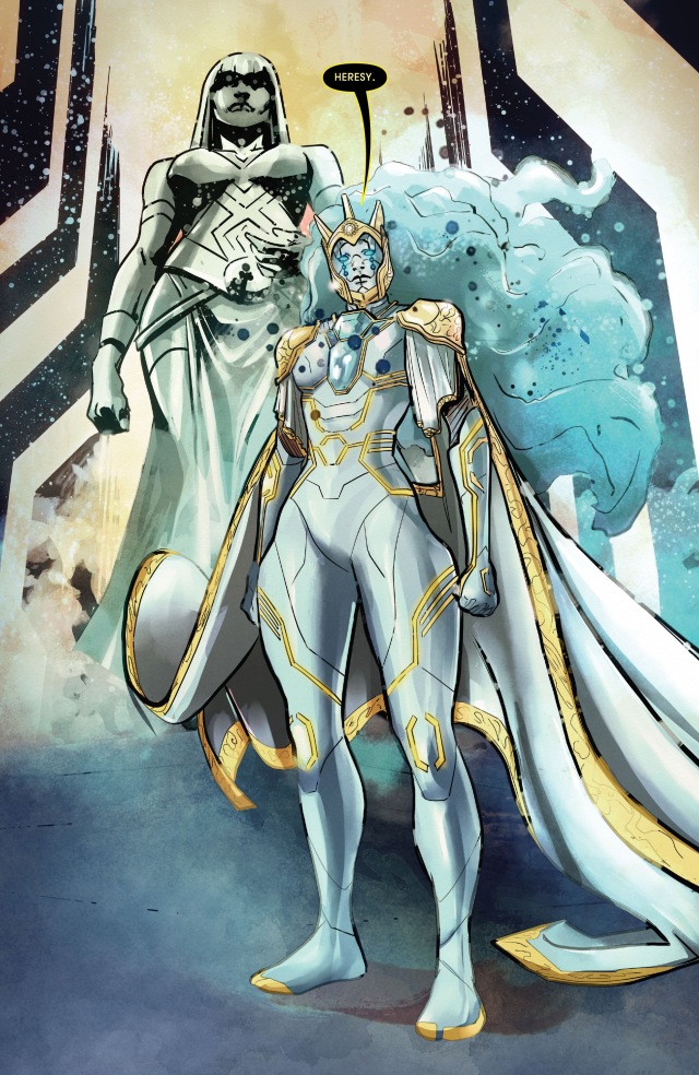 首先是狀況報告。大家熟知的永恆族英雄:伊格瑞斯(Ikaris)、瑪卡瑞(Makkari)、金勾(Kingo)、費斯托斯(Phastos)以及Sprite等人,全都歸屬到了天體艾賈克的旗下行動,遵循著祂的「異端」。
