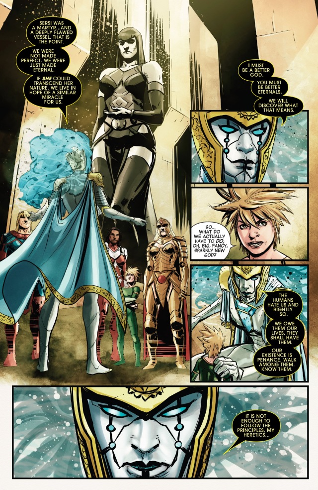 在瑟希的犧牲之下,他們知道自己需要變得更好,成為更好的神、更好的永恆族。雖然人類現在憎恨他們,但是他們還是必須盡一切力量去救助人類,活在他們之中。