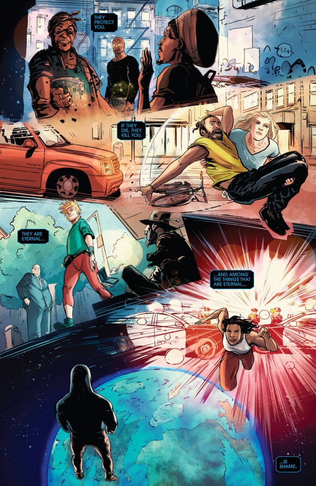 畫面來到先前在《永恆族》連載中,伊格瑞斯在預視中看見會死去的男孩Toby Robson家中。當時伊格瑞斯試著貼身保護他以避免男孩死去,最後他卻在為了拯救地球而死去後,被地球機器以Toby的生命能量復活,導致了男孩的死。