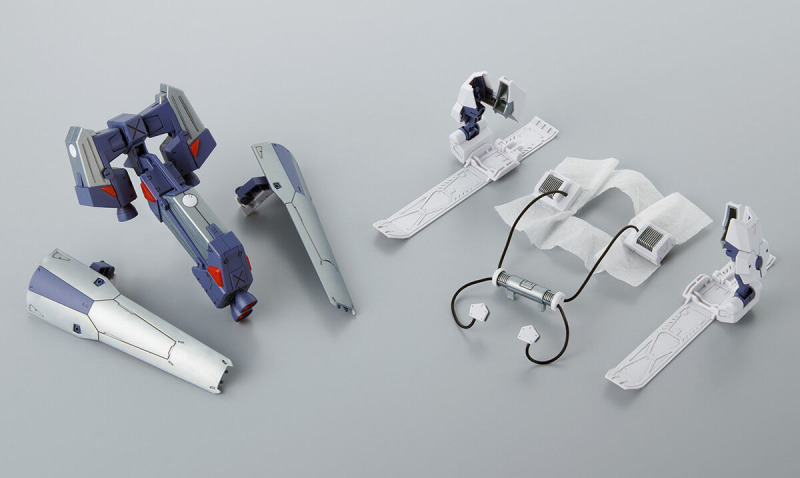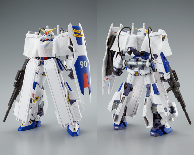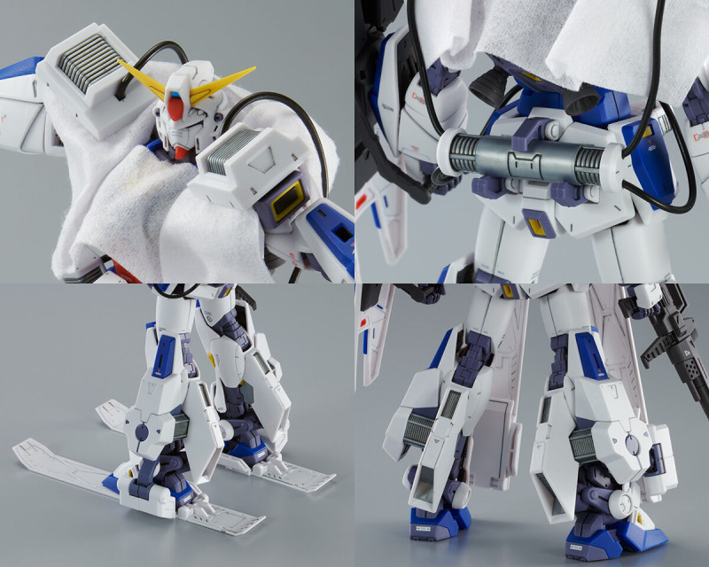 「MG 1/100 鋼彈F90用 任務背包 C型&T型」兩款背包都基於機械設計師大河原邦男新繪製的畫稿立體化,能夠搭配另售的「MG 1/100 鋼彈F90」本體進行換裝。過去未有明確設定的 C 型任務背包這次新設計成寒冷地規格,使用多數新規零件再現全身各處維持機體溫度的加熱器組件,附有金屬線表現連結各加熱器的纜線。胸部的防雪披肩則使用不織布材質製作,腿部前方裝甲則能展開至腳底形成滑雪板形態。