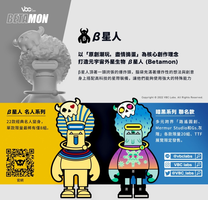 但你可能聽過「路遙圓創、「SU屍」、「Gs.灰階」、「Mermur Studio」等知名公仔公司或藝術家設計師;如果你也喜歡他們,千萬別錯過這次 β 星人與他們聯名的限量潮流玩具!將在TTF 的 B16攤位引爆 β 狂熱~