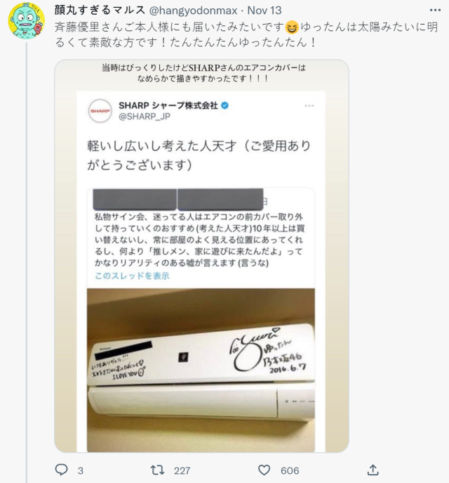 推主因為使用的是 SHARP 出廠的冷氣,還被 SHARP 官方推特轉推過 XD。