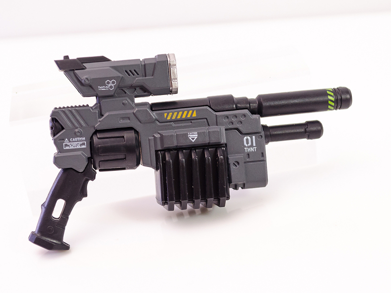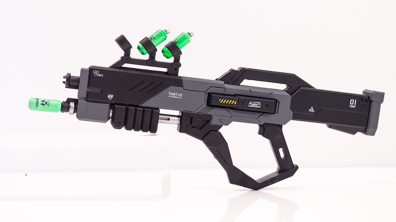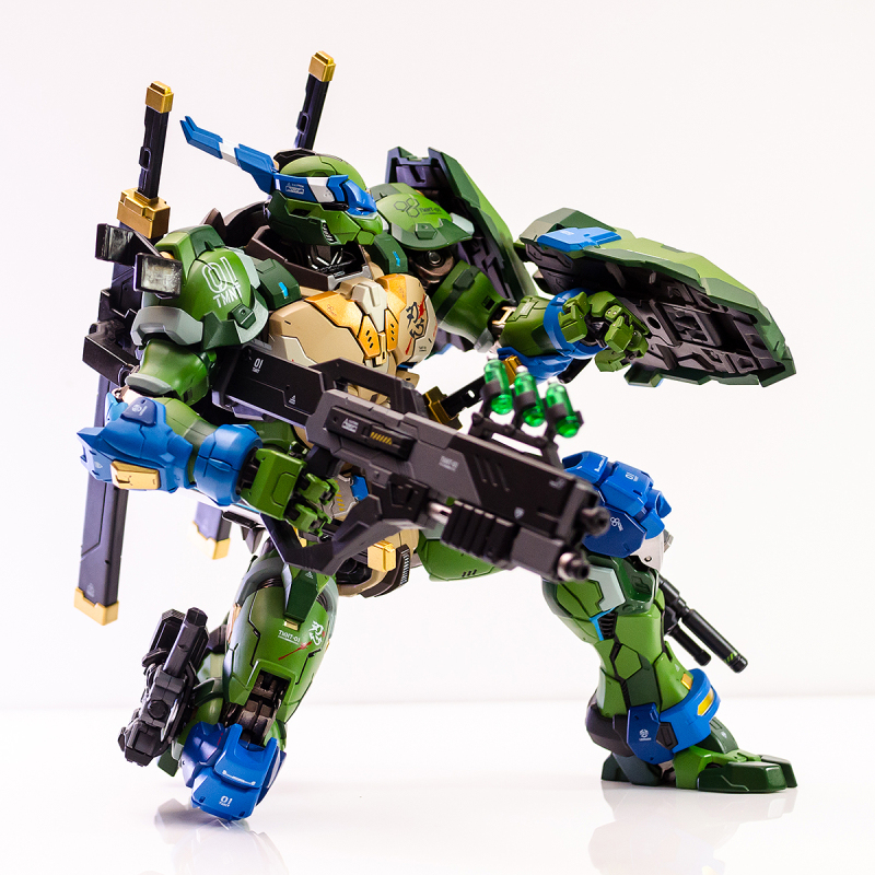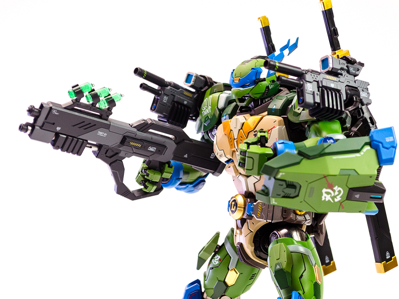 火仔動漫也相當用心地為這幾架『機甲忍者龜』設定了全新的故事,像是這次的TMNT 01 李奧納多就是由原本的忍者龜李奧納多所駕駛的機體,延續他擅長使用的雙刀武器戰鬥風格,TMNT 01 也搭載了武士刀、匕首等刀刃武裝,甚至還有能夠發射解除變異藥水的步槍、高機動左輪手槍、忍者飛鏢、多功能戰術盾牌等能夠對應多種戰況的豐富武裝,在過往忍者龜商品中是非常新穎的設定。