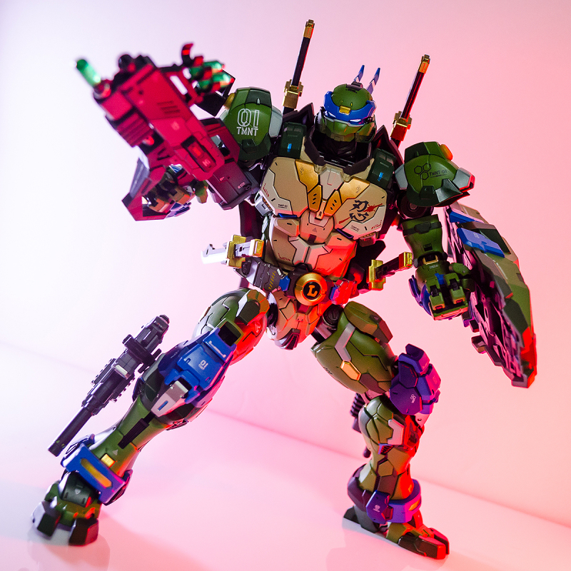 這套『機甲忍者龜』合金可動模型是由響指動漫、 HeatBoys 火仔動漫合作開發,取得尼克兒童頻道(Nickelodeon)正版授權,並邀請到插畫家草神擔任機械設計,將原作中忍者龜的形象重新設計成高性能的兩足步行機器人,融入了大量近代主流的機械設計元素。除了今天開箱的李奧納多外,未來也將陸續推出「拉斐爾」、「多納太羅」、「米開朗基羅」等其他忍者龜成員,甚至連他們的宿敵「許瑞德」也要機器人化!