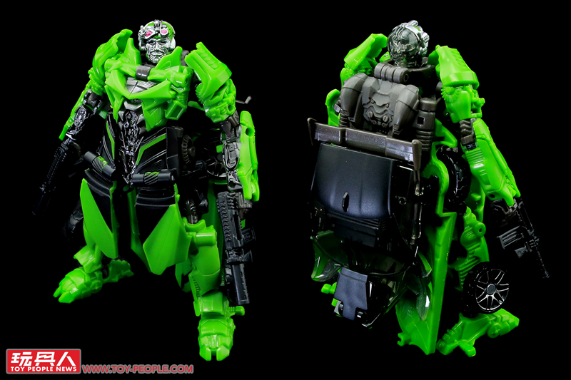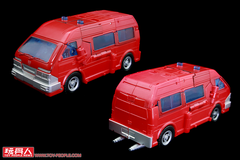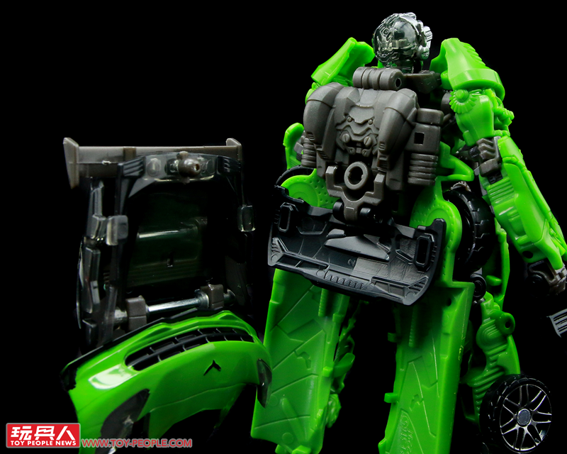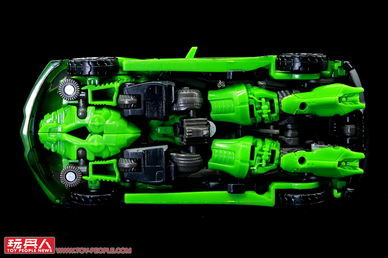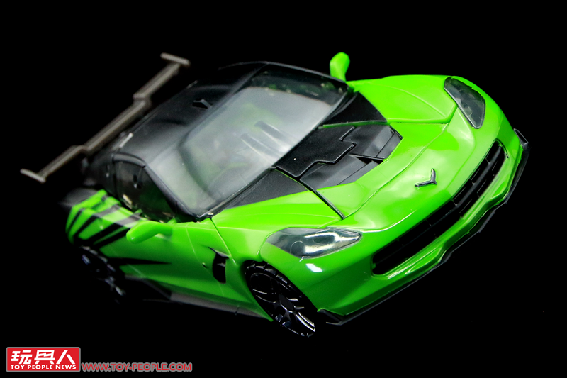 ▼載具模式,變形的設計雖然有蠻多塞博坦之戰版的影子,但補足了過去最大的缺憾-不完整的車尾,這次也終於能完整地變形隱藏,而車頂上的兩塊卡榫當然也不免讓人想到作為同模好弟兄飛輪(Ratchet)啦!