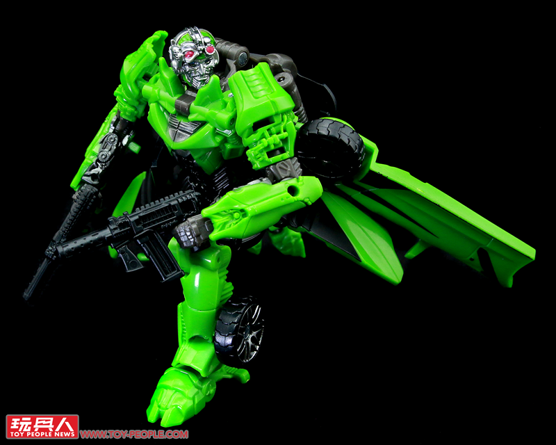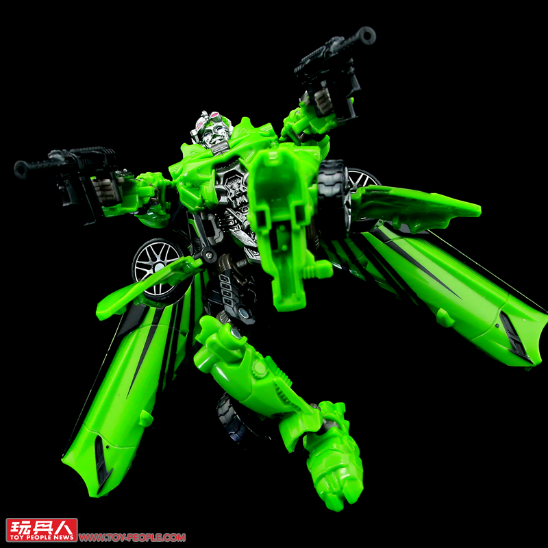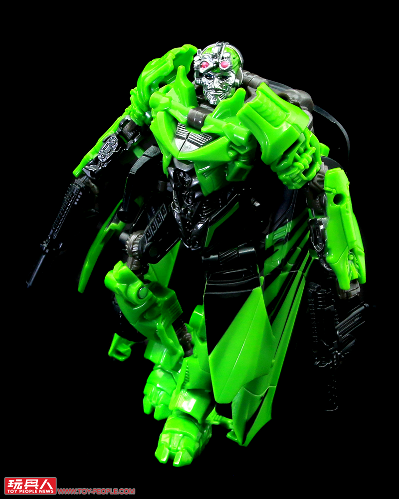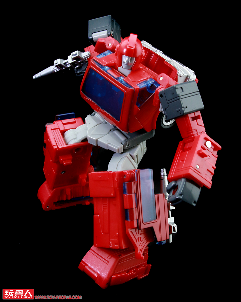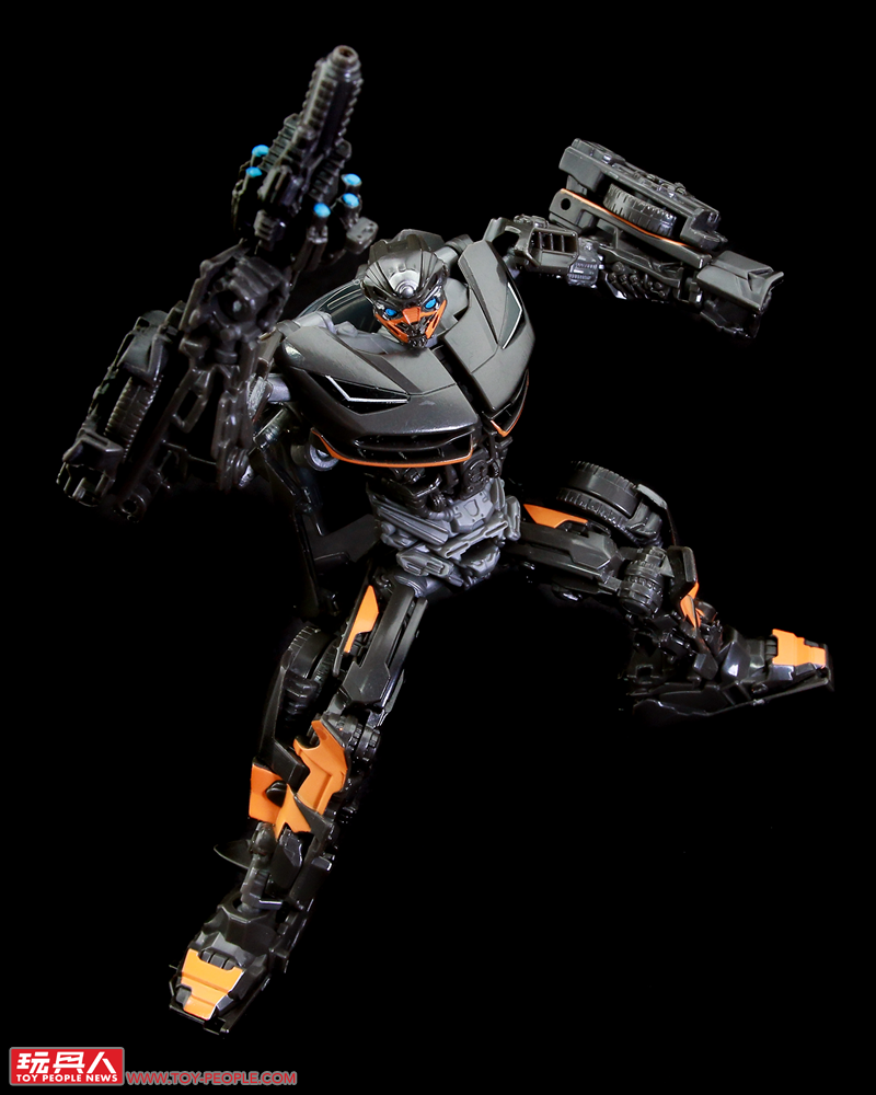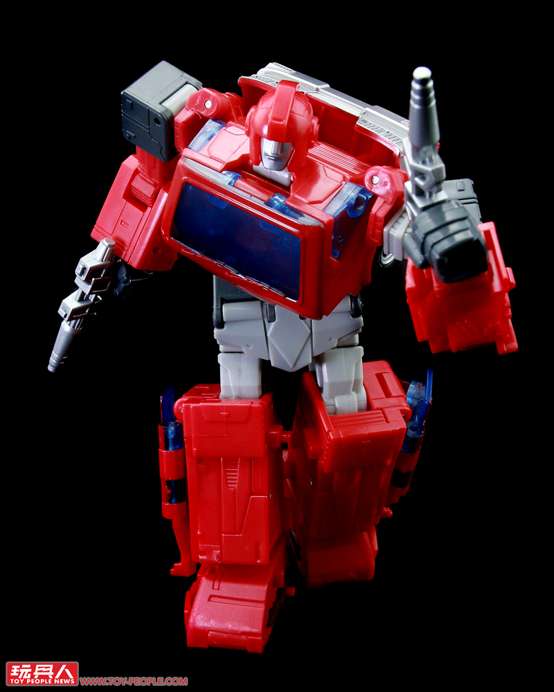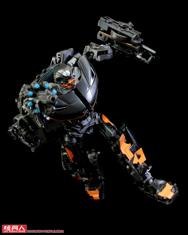 ▼機器人模式,結構與塞博坦三部曲的版本有些類似,但在造型上更加貼近動畫中登場的模樣,附屬的雙槍也能在這個狀態下裝備於背後。