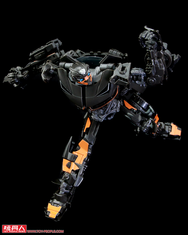 ▼相較於塞博坦之戰三部曲的版本尚有一片由車頂蓬分離而來的盾牌,電影工作室版本採用的是完全變形的設計,在零件的使用上更加充實飽和,結構也就相對紮實許多。