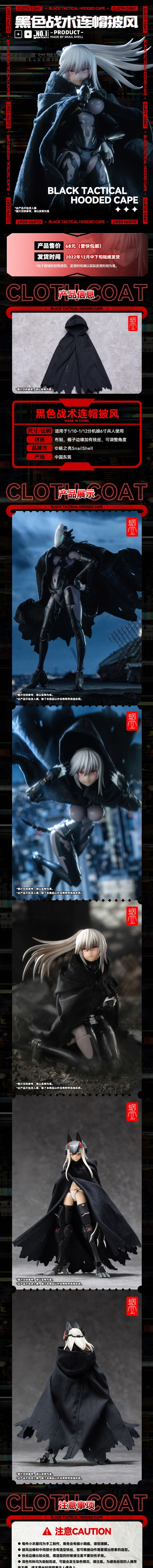 搭配另售的『G.N.PROJECT』系列「黑色戰術連帽披風」(可適用於1/10、1/12比例人偶),賞玩帥氣的造型~