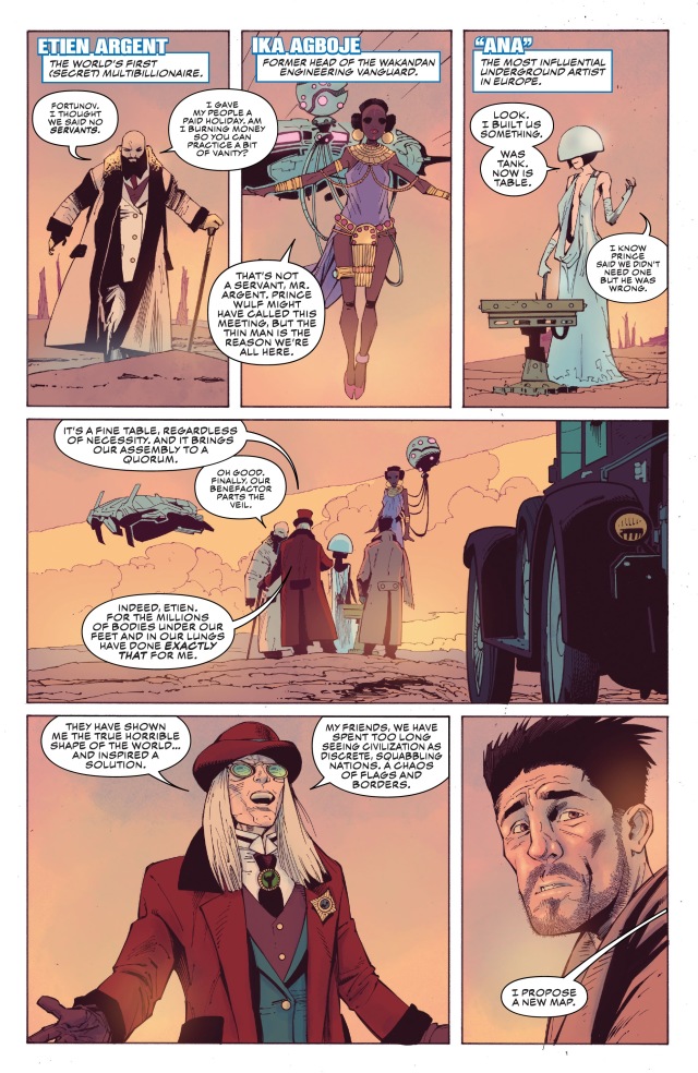不久,另外三位成員也隨即趕到:他們分別是世界第一位億萬富翁Etien Argent、瓦坎達(Wakanda)科學家Ika Agboje以及歐洲最重要的地下藝術家「安娜」(Ana)。