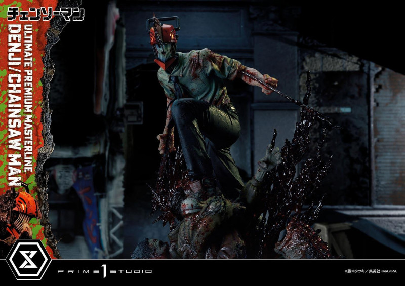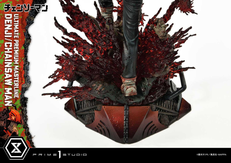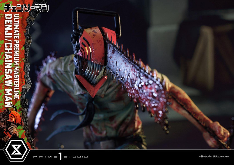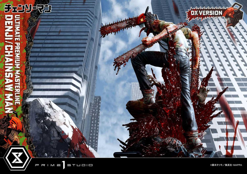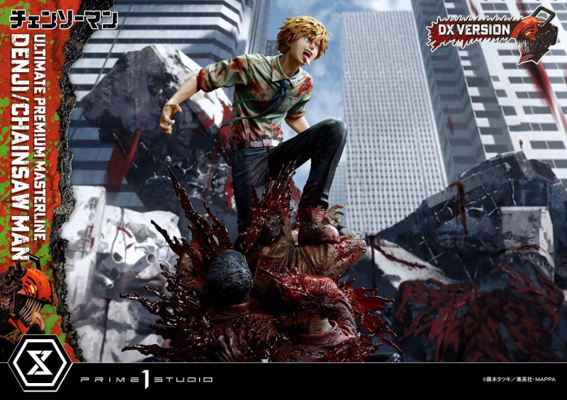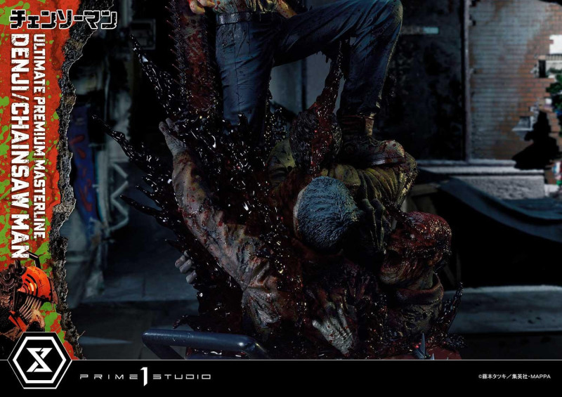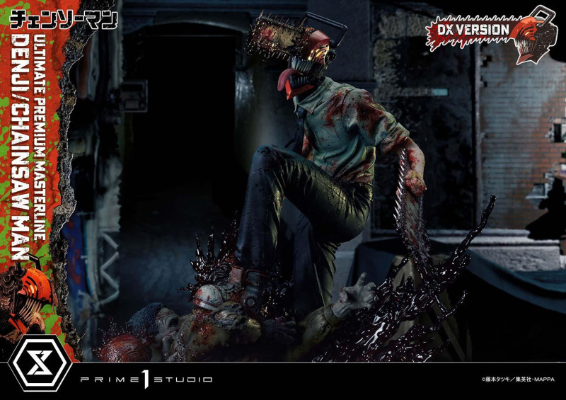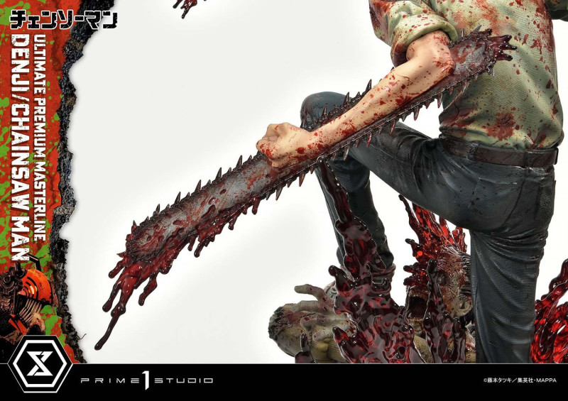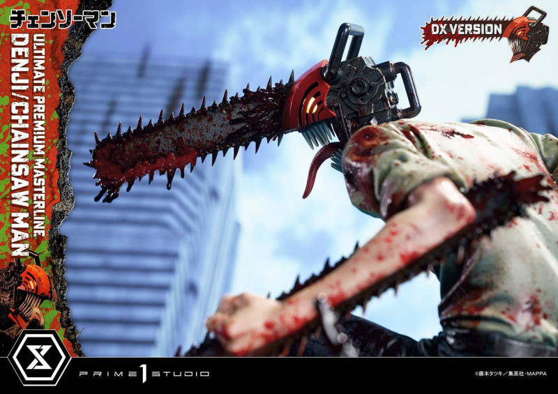 底台由鏈鋸齒輪與機械、血淋淋屍體組成,惡魔們痛苦表情仔細刻劃,淀治沾滿鮮血的衣服、運動鞋等細節也不容忽視。在豪華DX版本中,追加有鏈鋸人吐舌頭雕、兩款淀治頭雕以及可以替換的手臂零件,在Prime 1 Studio官方線上商店或授權經銷商購買,還附有啵奇塔特典!