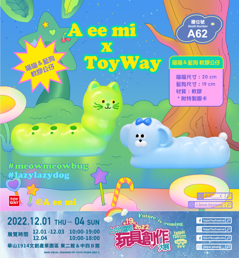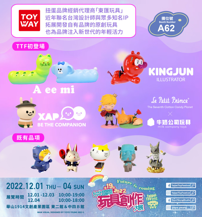 既有的玩具品項「小王子狐狸之夢」、「白爛貓」、「黃阿瑪的後宮生活」、「黃色書刊-勇者系列盒玩」全都在東匯玩具A62攤位,期待與你見面~