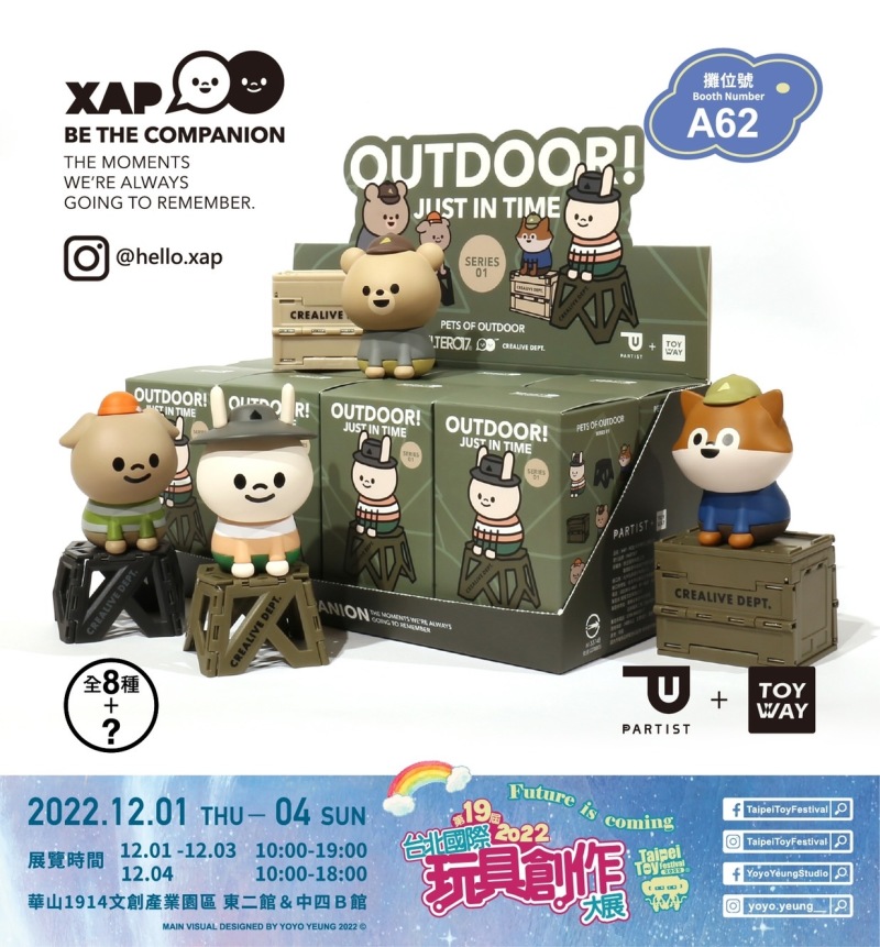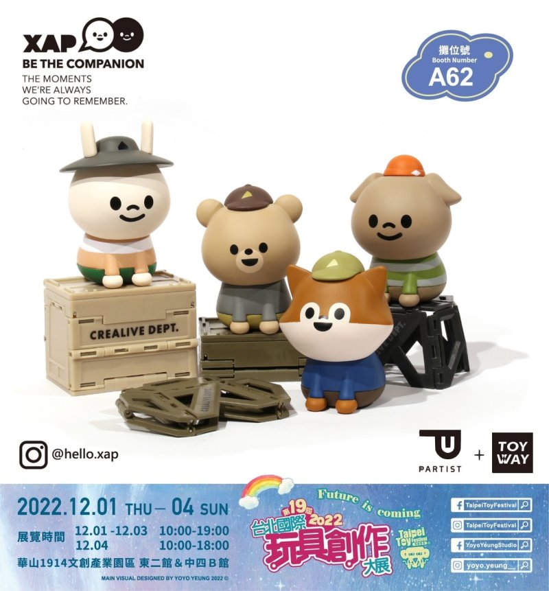 潮流慢活系圖像設計品牌 XAP,創作形式涵蓋角色藝術創作、動畫、公仔玩具,流行商品與商業設計,是圖像設計與藝術的創作集合,運用不同的內容創作與設計專業,結合流行生活的元素,將多元的文化觀察融入於作品之中,XAP代表以樂觀的態度面對人生旅程的人們,攜手夥伴之間的情誼與砥礪,一起邁向未知的挑戰。