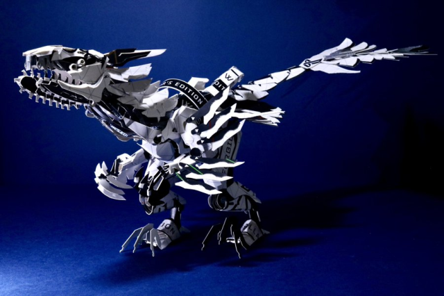 最讓小編驚豔的,就是他曾將遊戲《地平線 西域禁地》 PS5 的同捆盒裝,製作成遊戲中迅猛爪 ( Clawstrider ) 的模樣,真的是...跟鬼一樣的手藝阿...。