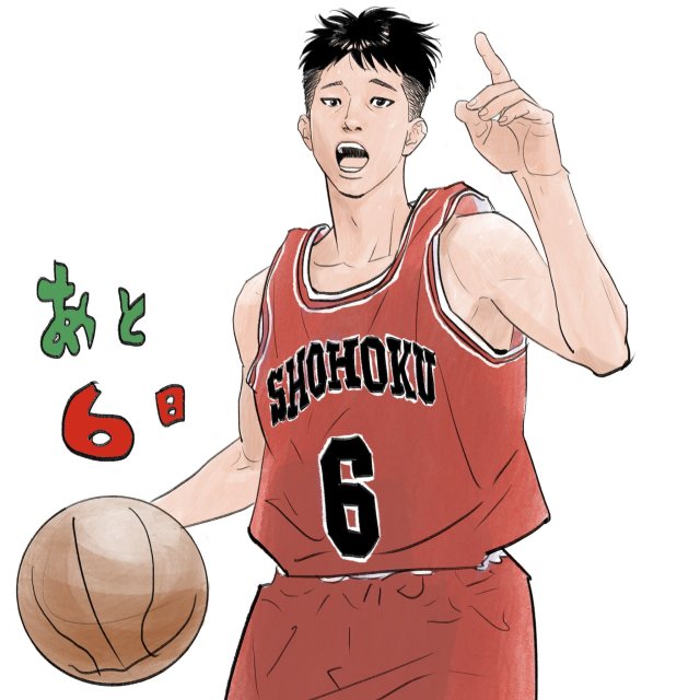 另外,就在大家還在猜想倒數「5日」的明天,是否會出現「5號」木暮公延的廣告宣傳片時,在倒數6日的今天,《灌籃高手》漫畫家井上雄彥老師也在他的Twitter上分享一張他所親繪的「6號」安田靖春。