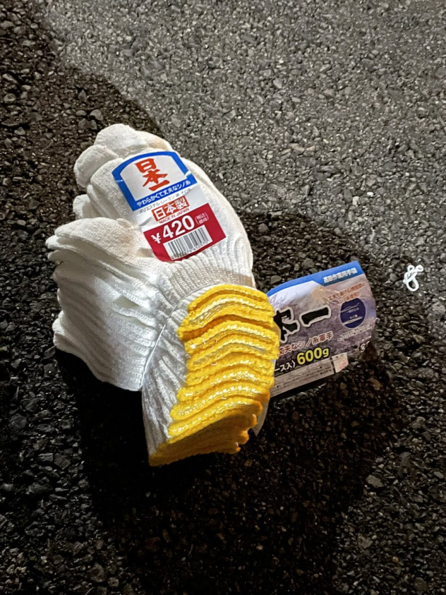 最普通的,就是這種攤在馬路上的工作手套,有時候在台灣街邊也會看到。 ( 仍要呼籲不要亂丟垃圾 QQ )