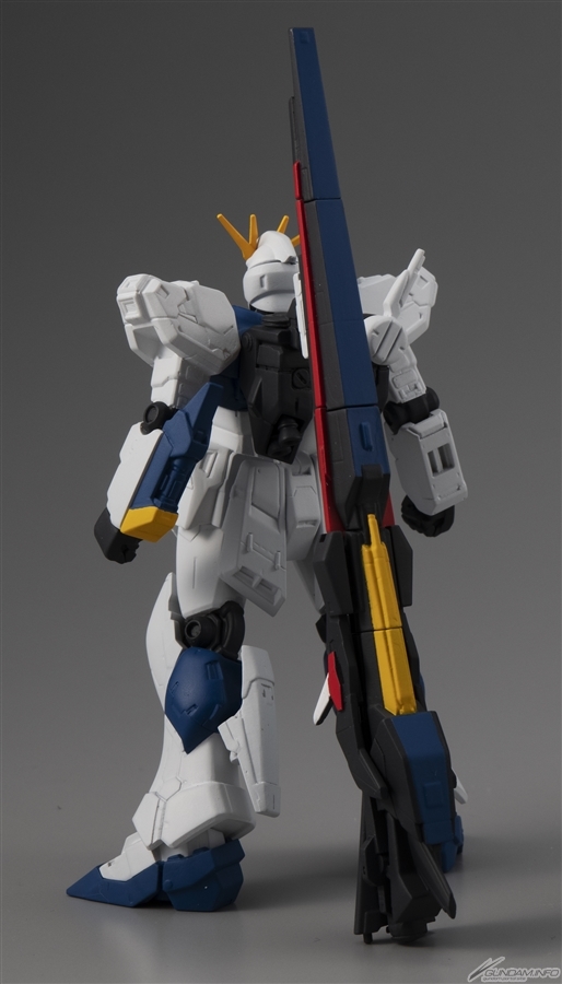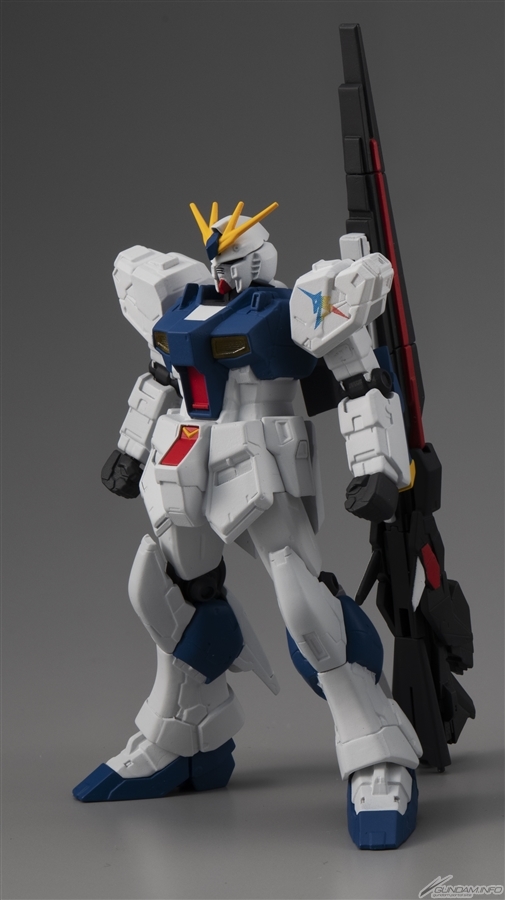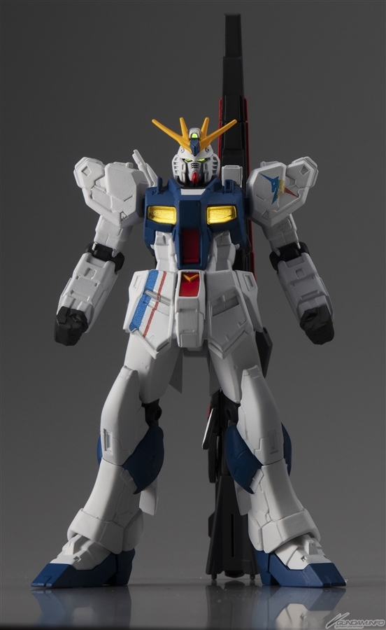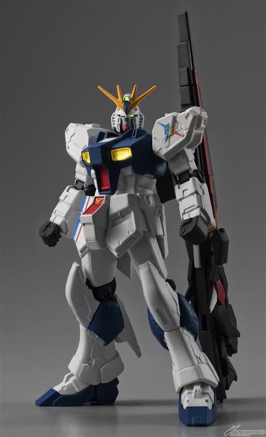 此次則單獨將人氣景點「福岡實物大 ν 鋼彈立像」商品化,以新規零件再現福岡立像版特有的原創武裝「遠程翼狀感應砲」,本體的成形色與肩部阿姆羅個人標誌也經過修改,還原福岡立像版造型。和一般版商品相同,能將 LUMINOUS 發光組件置於胸部內,點亮後即可讓頭部主副攝影機、胸口排氣口發出光芒!