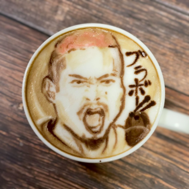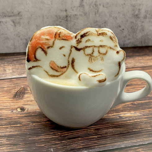 擅長製作拿鐵拉花的 NAOKI,將漫畫中櫻木花道跟安西教練可愛的互動製作成拿鐵拉花,搭配奶泡的蓬鬆感,那個ㄉㄨㄞㄉㄨㄞ的效果真的超級可愛 !