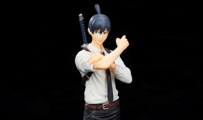 「TAITO景品 早川秋 FIGURE」,尺寸約高 18 公分,將阿秋身穿招牌的襯衫制服、直立髮髻及黑色耳環等特徵造型立體化~有別於平時生無可戀的死魚眼,臉上的表情酷酷中又透出一絲溫柔!挽起袖子的動作露出手臂的肌肉線條,身後揹著的武士刀細節也是一大亮點~