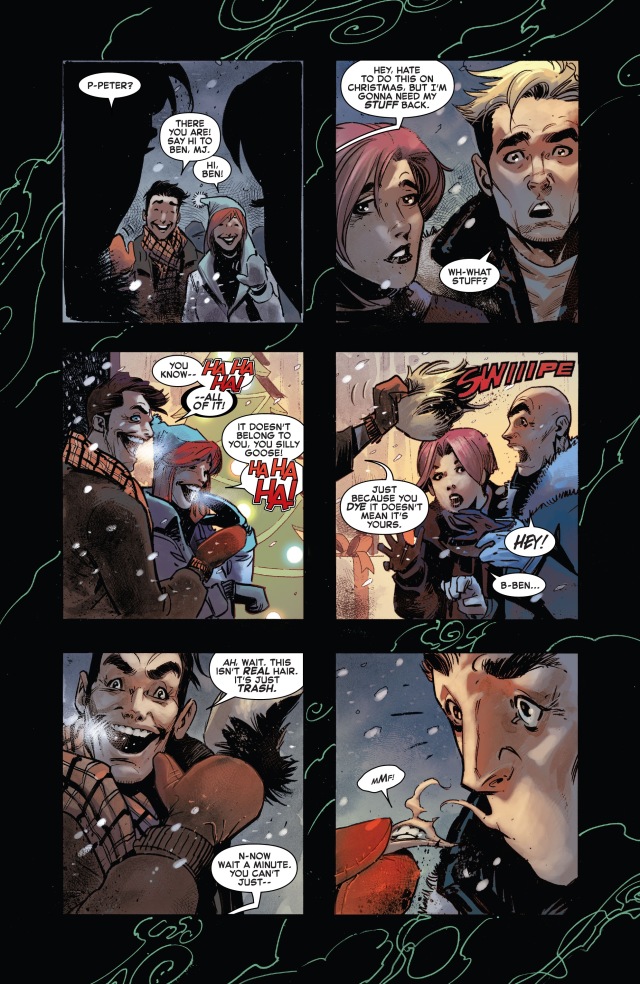這個時候,紐約市還處在一片和平之中,彼得的朋友們聚集起來為前陣子不幸死去的哈利‧奧斯朋(Harry Osborn)的冥誕做個小小的慶祝。即使是現在與彼得決裂的瑪莉珍‧華生(Mary Jane Watson)也現身了。