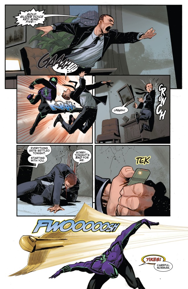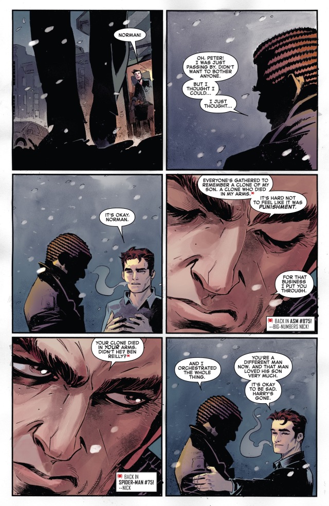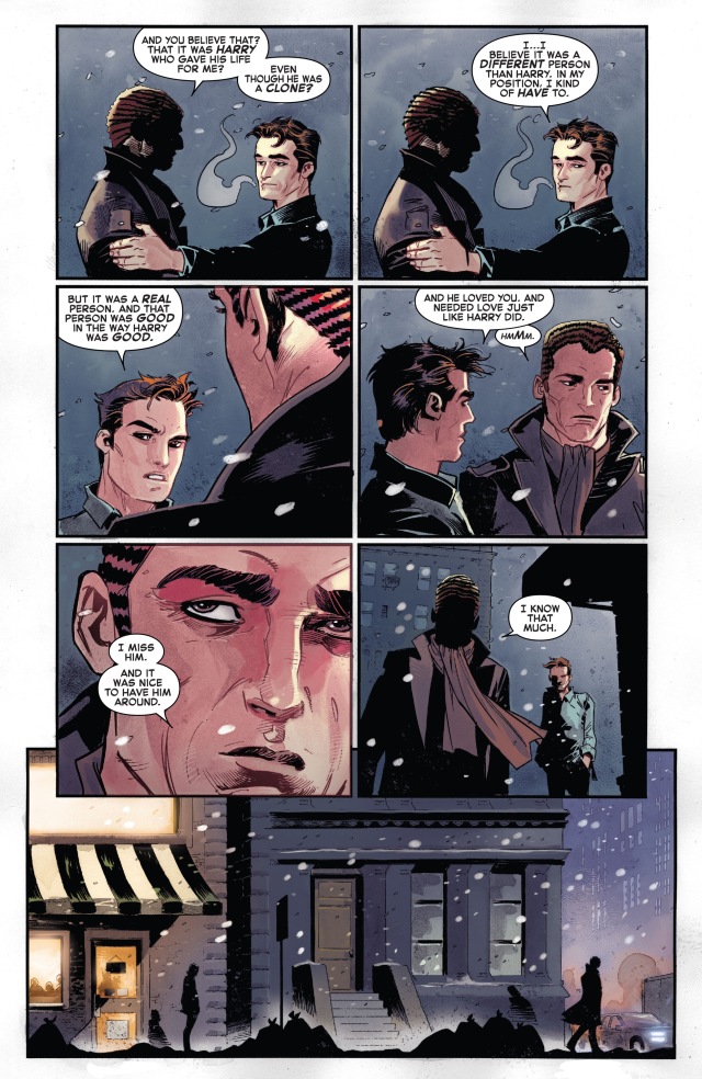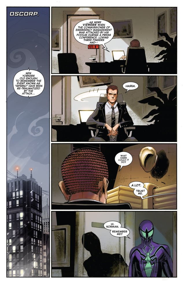 更重要的是,由於自身的罪孽被反派「食罪者(Sin-Eater)」給吞掉而變成了一個好人的諾曼‧奧斯朋(Norman Osborn),也就是哈利的父親,也默默出現在店外。