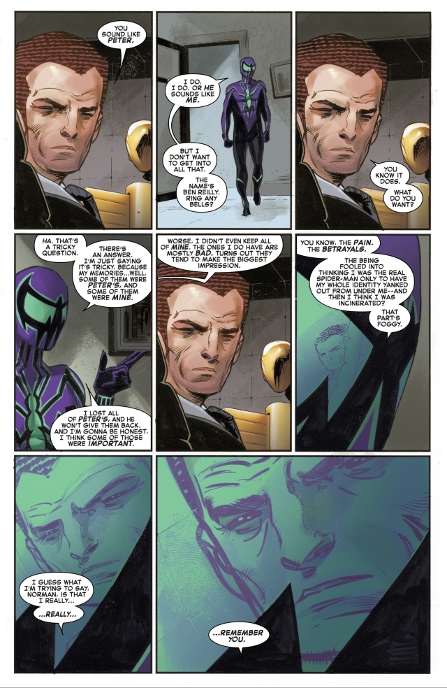前陣子的故事中,哈利其實一直都是個複製人,而真正的他其實早就已經死去了。而諾曼那時也害死了班‧萊利,讓他最後死在了彼得的懷中——或至少他們是這以為的。