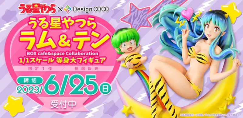 日本知名的動漫畫等身雕像製作公司 Design COCO ,推出經典重製動畫《她來自煩星(福星小子)》主題的「拉姆&小天 BOX cafe&space Collaboration 1/1 等身大模型」,售價為 5,800,000 日元,全球僅限定一體,將在網路商店 COCO Store 進行抽選販售!