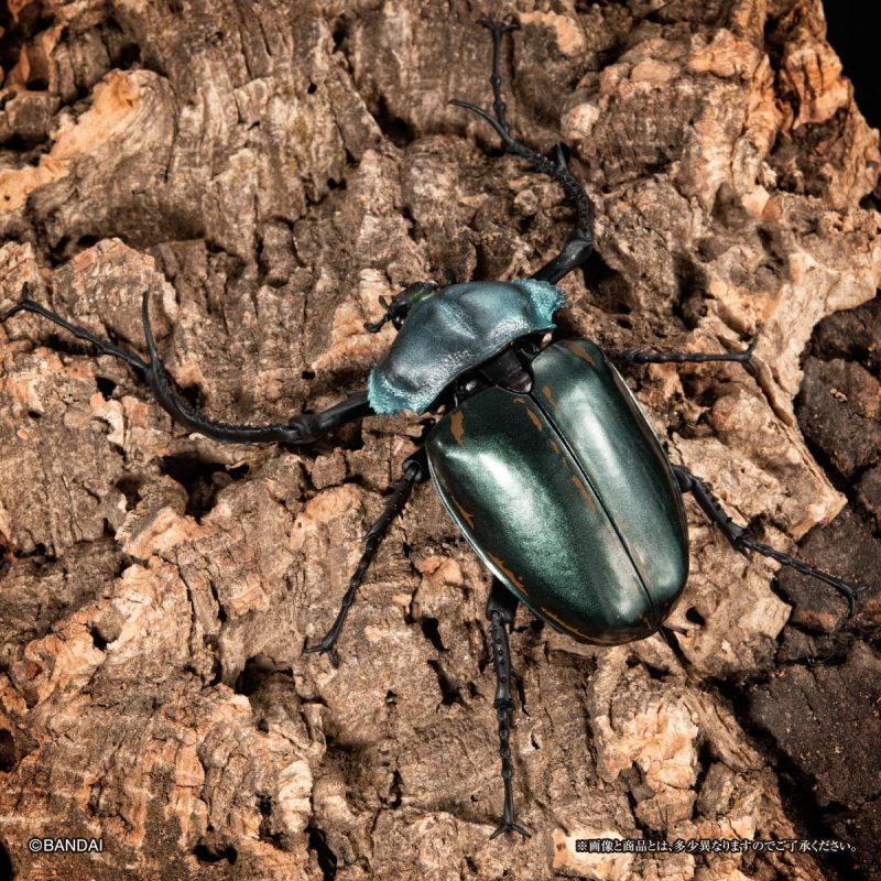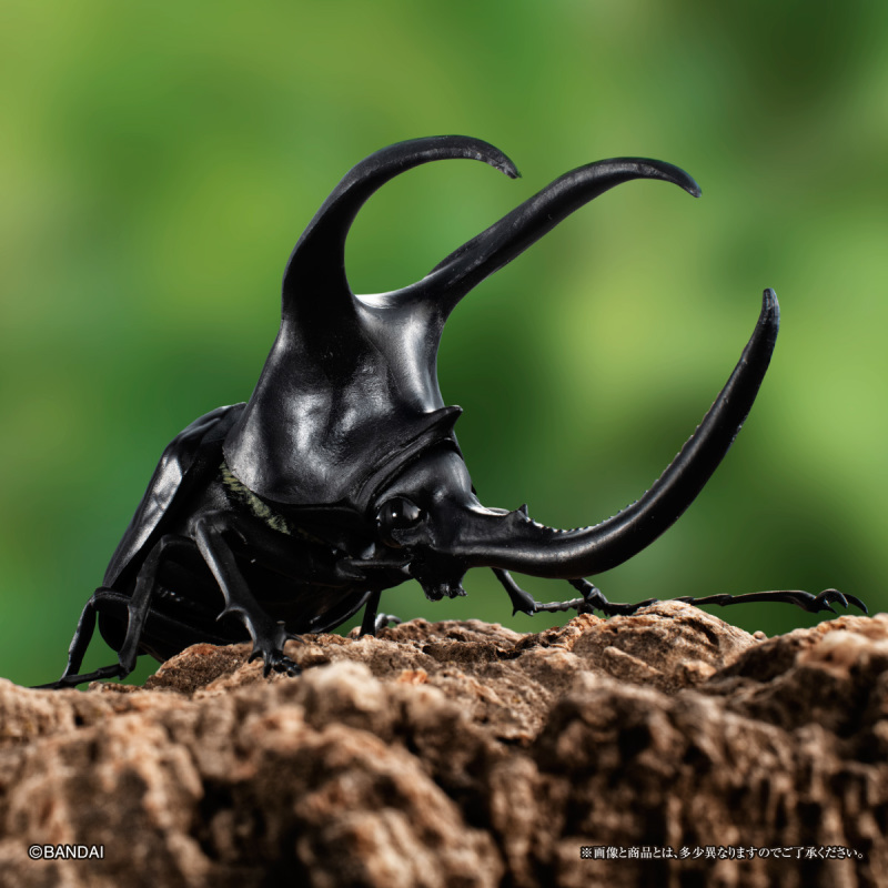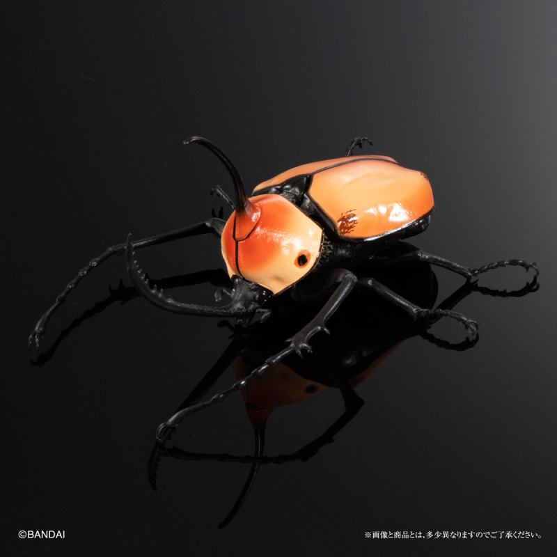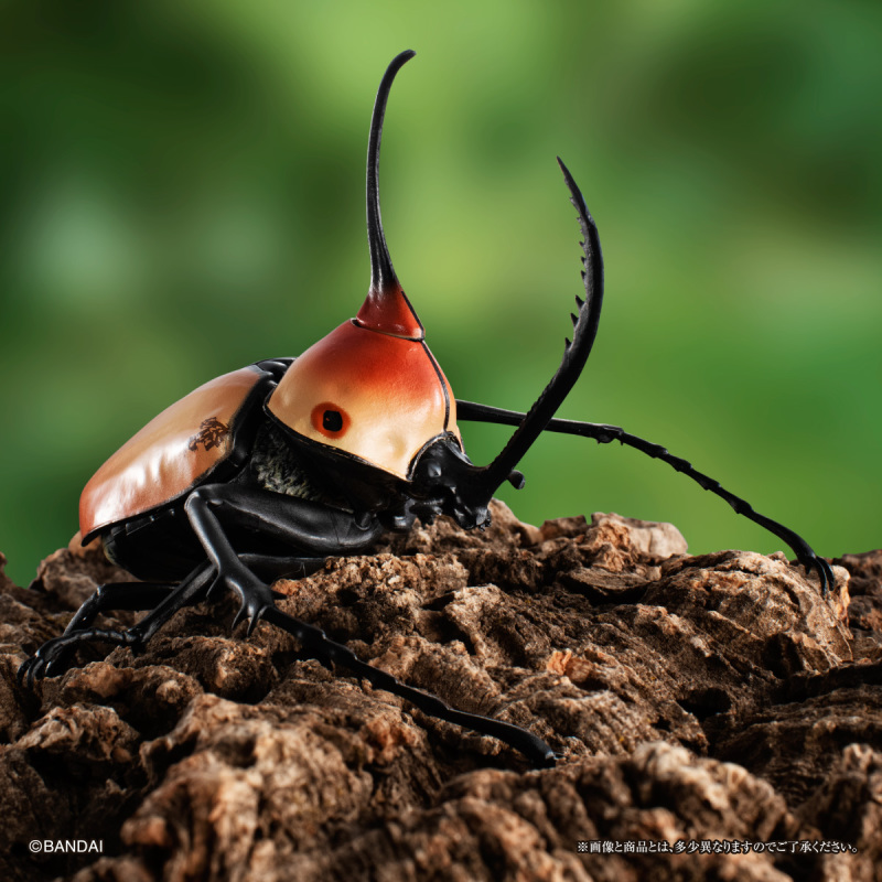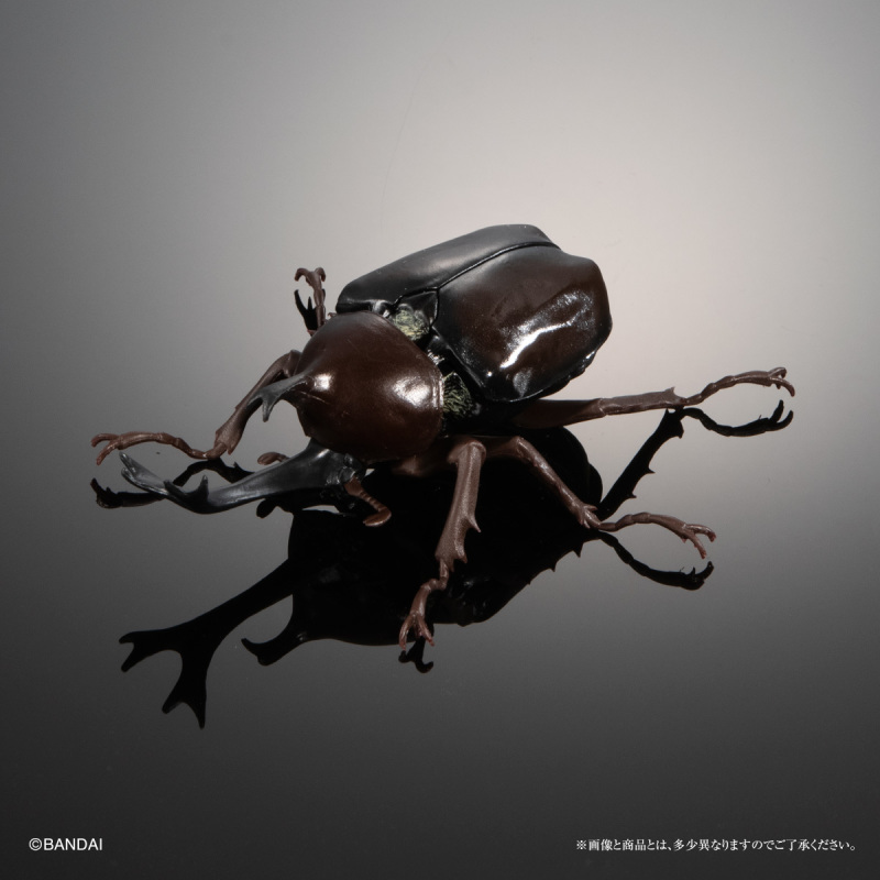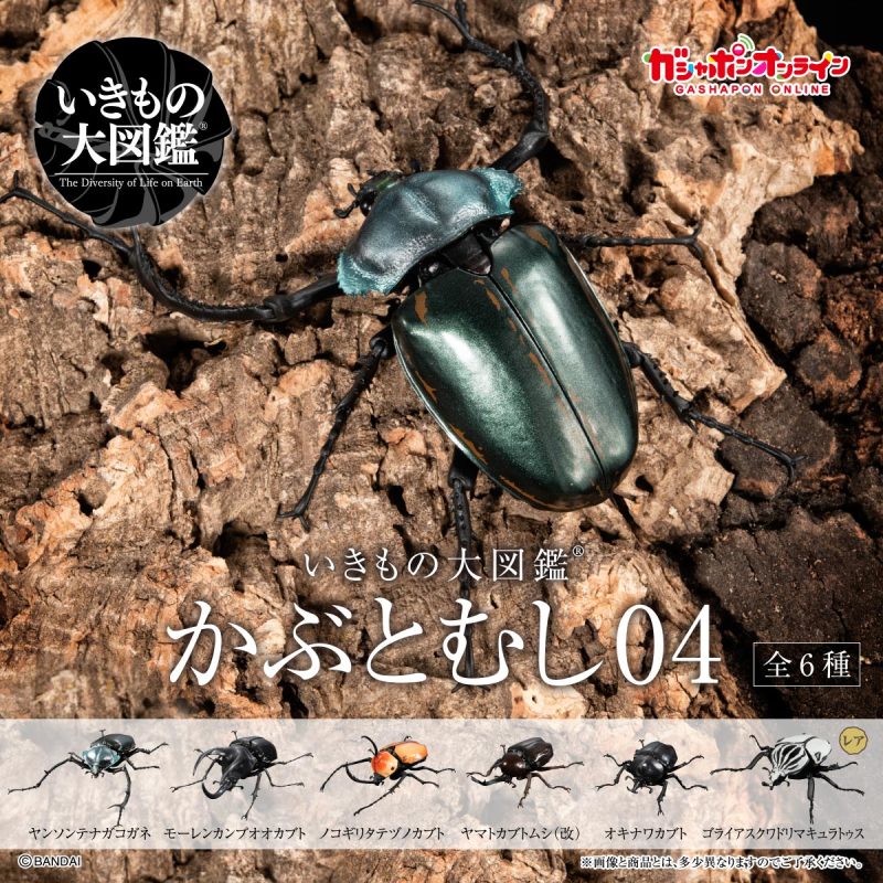 「GASHAPON 生物大圖鑑 獨角仙04」轉蛋,尺寸約長約 7~12 公分,將獨角仙標本以3D建模,徹底還原其生物構造與細節,並設計有全身 14 ~ 23 處可動關節,可以賞玩觸角細微的變化以及展翅飛行、抬頭威嚇等各種擬真的姿態!收錄陣容有中選率 9.6% 的白紋大角金龜、中選率 14.9% 的陽長臂金龜、波特力豎角兜蟲,和各20.2%機率的婆羅洲南洋大兜蟲、大和兜蟲(改)、沖繩獨角仙一共六種款式。頭部特徵性的犄角和複雜的嘴部構造、足部鋸齒,漆黑堅硬的硬鞘擬真塗裝等細節,搭配可動的頭部與腹部、透明後翅的零件和展示支架,能夠再現多種造型!