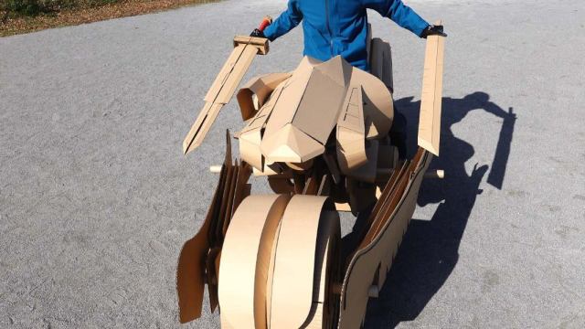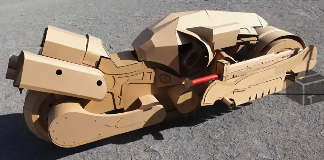 先前我們介紹過,在 YouTube 知名的紙板創作達人 つくるさん,不但打造出《遊戲王》1:1的決鬥盤,更進而和集英社旗下數位雜誌《Vジャンプレイβ》合作推出教學影片,過去我們也介紹過他製作的《遊戲王5D's》中騎乘決鬥盤「D輪」。這次他再次挑戰交通工具,製作遊戲《FINAL FANTASY VII 》中克勞德騎乘工具「芬里爾機車」(バイク フェンリル),讓網友驚艷不已。