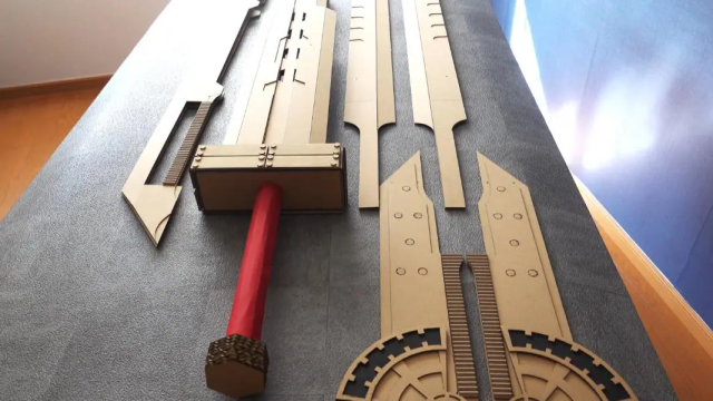 這次つくるさん再次以紙板打造,當然要用紙板製作需要著強大的技術力,不論是紙板的牢固性與選用,還是車體外觀的表現,對於つくるさん來說,這絕對是一個挑戰。他也將克勞德的武器一同製做出來,讓整個氛圍更加完整。