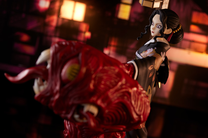 以動畫中名場面、動人場景等各種情景為主題的 S-FIRE 原創系列「Super Situation Figure」,將「鬼舞辻無慘 擬態 芸妓 Ver.」立體化,以劇中在無限城憤怒召開下弦會議的場景為基礎,還原千年鬼王眾所矚目的擬態藝伎造型,白皙的肌膚加上妖豔妝容搭配華麗和服,展現穩重而妖嬈的氣質。搭配替換零件還能夠賞玩讓下弦鬼嚇尿的壓倒性「憤怒」狀態,臉上冒出青筋猙獰的表情搭配可怕的手手~魄力十足!