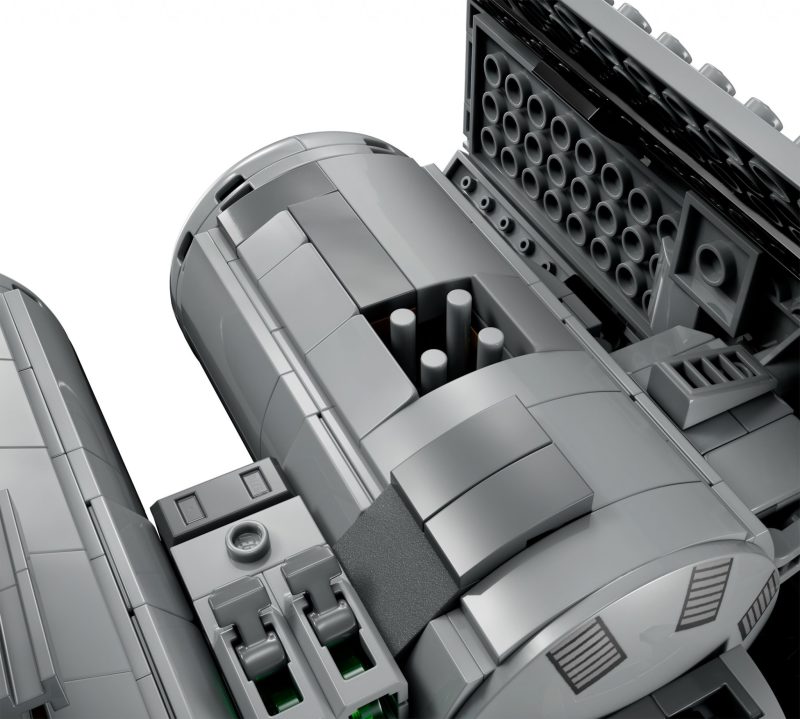 本作是擁有 625 片零件的「載具+人偶」組合,鈦轟炸機再現了圓柱形機艙、機翼與加長版本的太陽能收集板,位於右邊的駕駛座艙、左邊的炸彈艙,以及機腹位置的投彈口都有很不錯的還原度,而在兩艙之間也設置了子彈彈射裝置,人偶包含恐怖的帝國大君-達斯·維達、帝國女軍官-Rae Sloane、鈦轟炸機駕駛兵共三位,可以再搭配可愛的 Gonk 機器人一起把玩;值得一提的是,在包裝盒上頭還有《絕地大反攻》的 40 週年紀念 LOGO 喔。