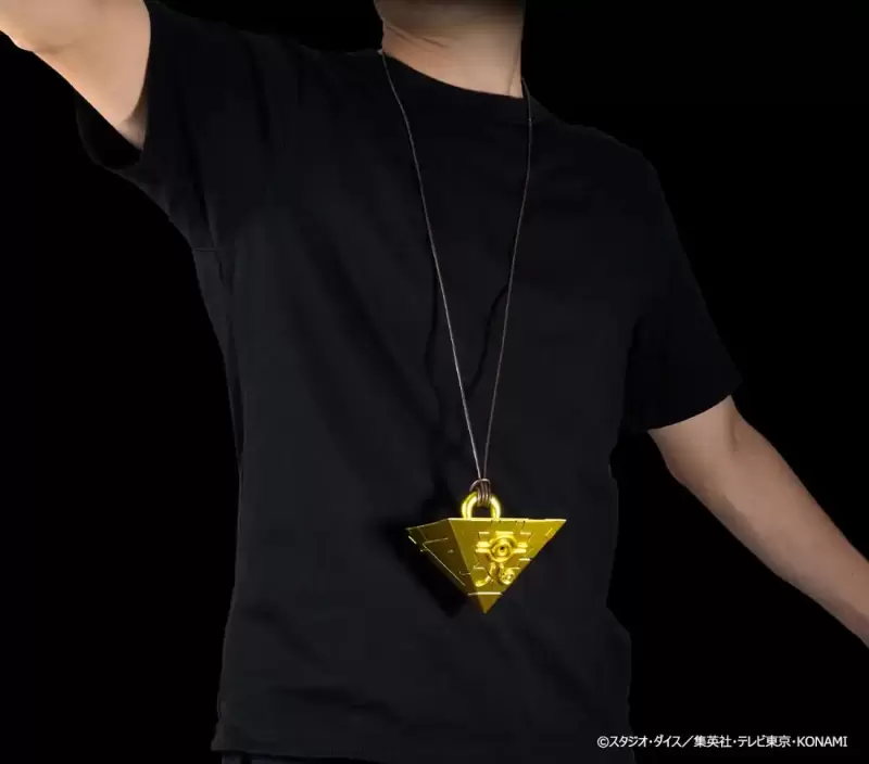 另外,收錄有變成闇遊戲的效果音、動畫背景音樂《熾熱的決鬥者們(熱き決闘者)》、動畫OP主題曲《Voice》等,打造劇中決鬥的臨場感!並附有專用皮革繩(長1.3m),掛在脖子上就能仿效動畫初期遊戲將千年積木隨身攜帶的造型穿搭。也可以放在專用台座上展示,純粹作為發光小夜燈與音樂播放器來享受。