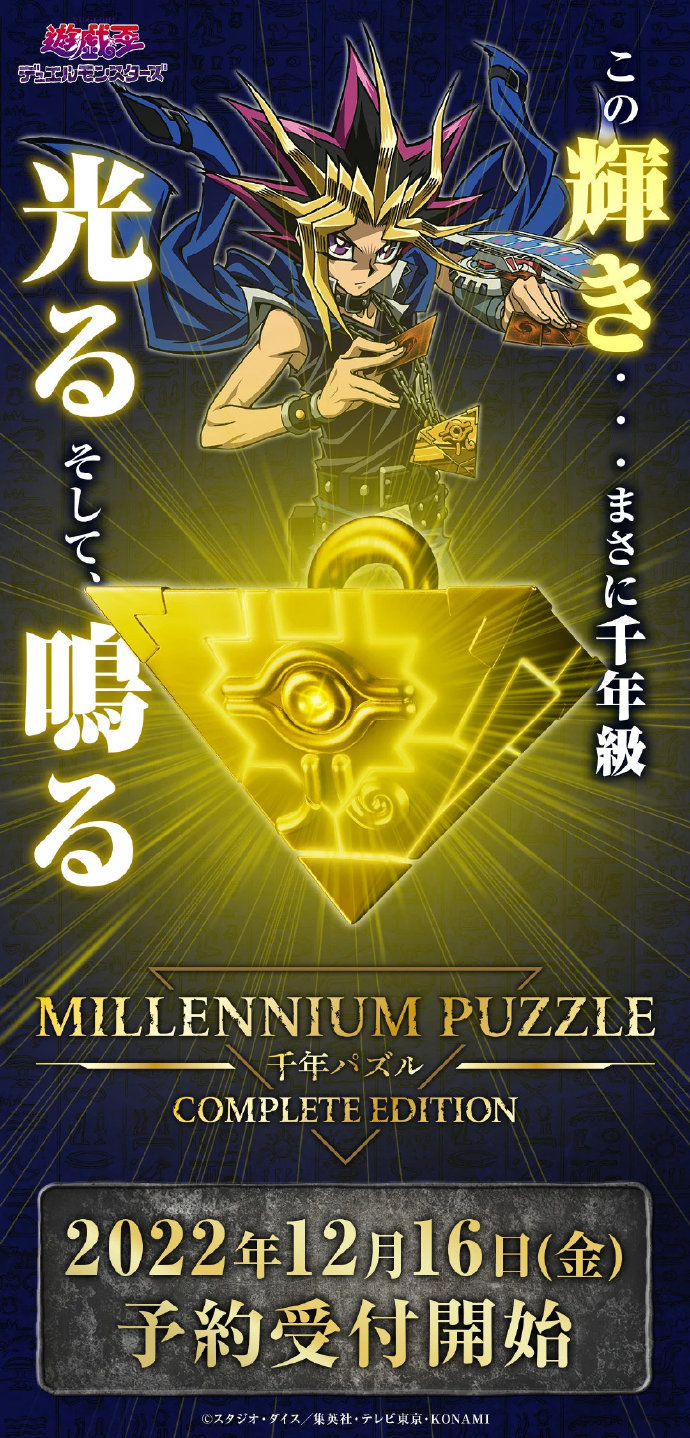 日本萬代玩具公司將推出電視動畫《遊戲王-怪獸之決鬥》主題的待望新作—主角武藤遊戯持有的「千年積木 COMPLETE EDITION」,以搭載LED光效、劇中音效的完全版首次登場!參考售價為 8,800 日圓,預計將於 2023 年 07 月發售。