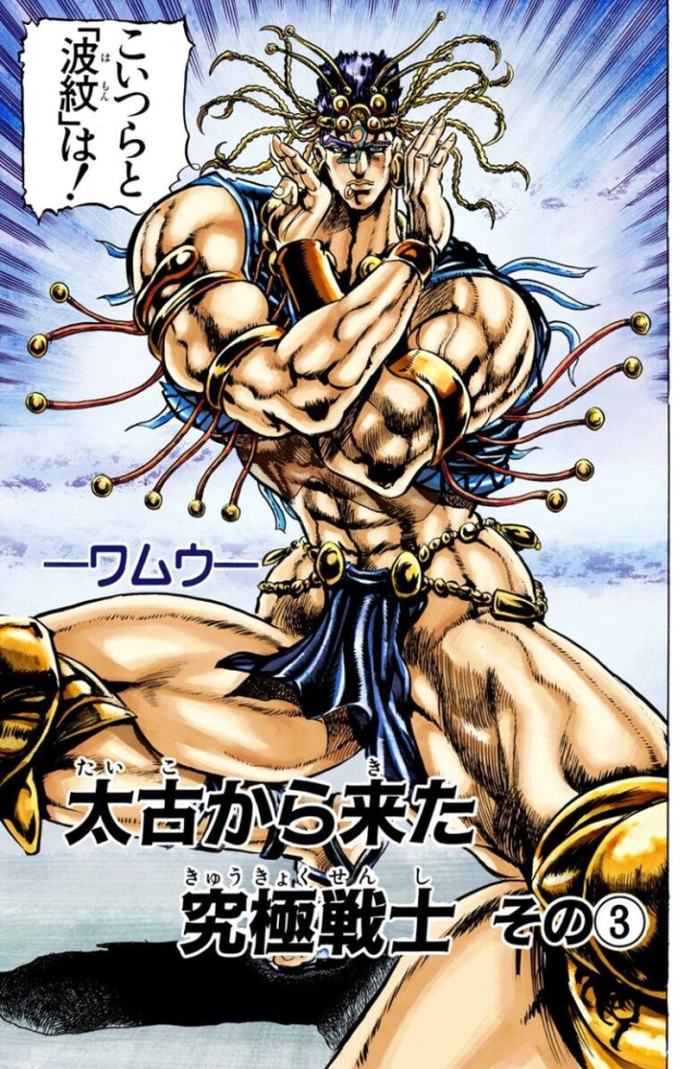瓦姆烏(ワムウ)相信熟 JOJO 的朋友應該不陌生,出自於《JoJo的奇妙冒險 第二部 戰鬥潮流》,貴為柱之男的其中一員,使用「風之流法」,可以操縱吸入肺部的空氣,製造出小型龍捲風來戰鬥。雖然殺死了西撒·A·齊貝林,但是瓦姆烏是重視榮譽的戰士,仍留下西撒的波紋,最後輸給了喬瑟夫·喬斯達。