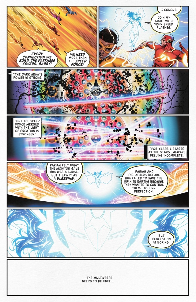 閃電家族發現神速力並不足以彌補黑暗造成的破壞。但是光博士跟上了他們,並以自己的光明加入速度,給多元宇宙帶來新的自由。