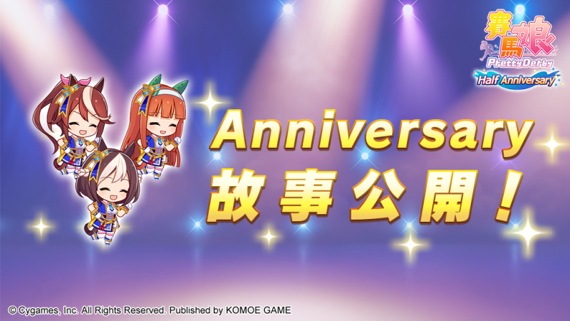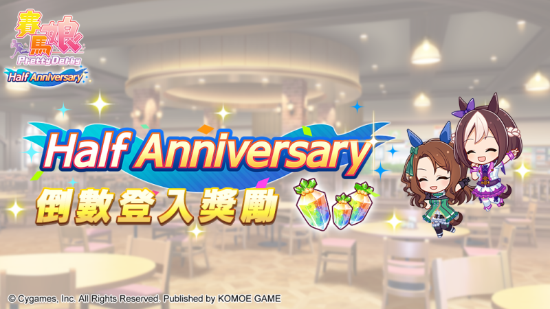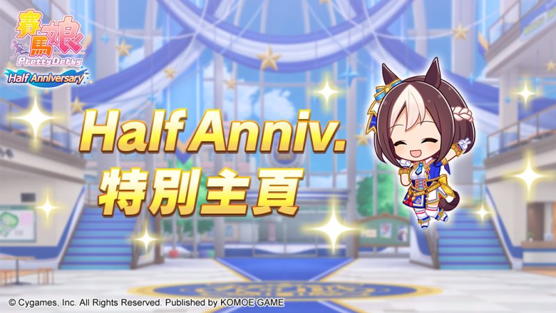 由日本Cygames 開發、小萌科技(KOMOE TECHNOLOGY LIMITED)代理的超人氣養成手機遊戲《賽馬娘Pretty Derby》繁體中文版近日宣布,為了紀念12月27日迎來正式營運屆滿半年,將於12月19日 12:00起,搶先開放「Half Anniversary活動第1彈」。「Half Anniversary特別故事」、「Half Anniversary倒數登入獎勵」、「每日1次免費轉蛋活動」等活動同步開跑!