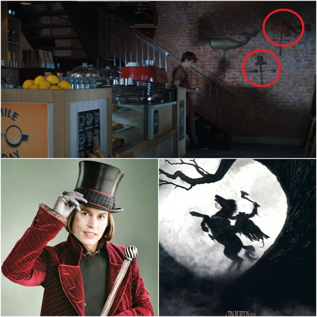 在風向儀咖啡廳的牆上,有幾個風向儀的設計很有巧思,都是致敬導演提姆波頓歷年的作品。其中包括《巧克力冒險工廠》威利旺卡的高帽子和枴杖,以及《斷頭谷》的無頭騎士。