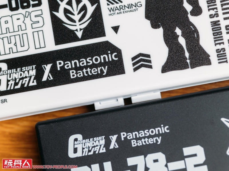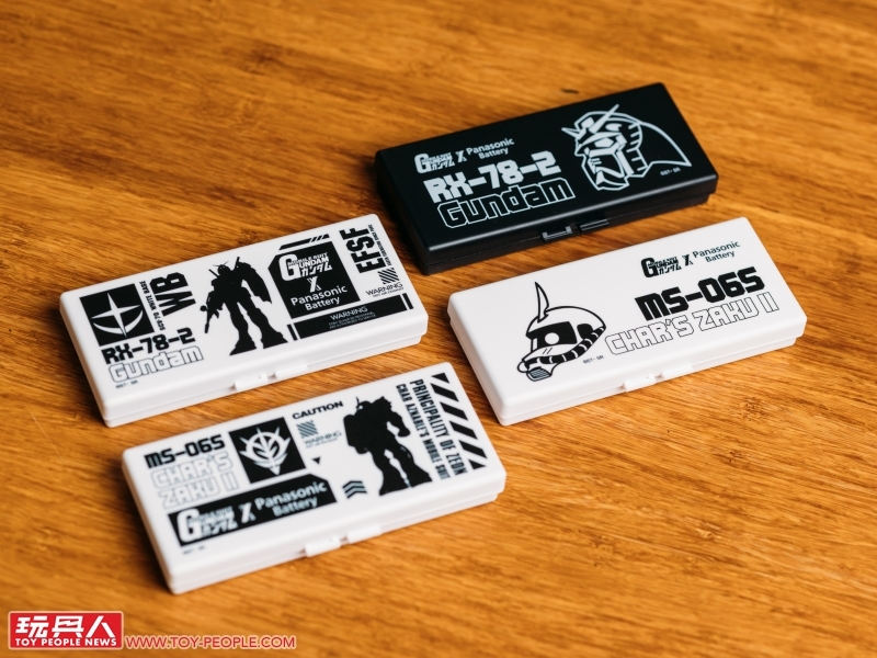▼ 聯名電池盒一共有四款,分別是「吉翁公國」與「地球聯邦」兩派陣營的主題樣式,並以兩邊最具代表性機體「夏亞專用薩克」、「RX-78-2 鋼彈」為題,注入剪影、機體編號、陣營徽章、機體頭像圖案......等元素,加上 Panasonic Battery ×《機動戰士鋼彈》的標誌所完成!對比鮮明的黑白兩色使整體擁有洗鍊的視覺效果。