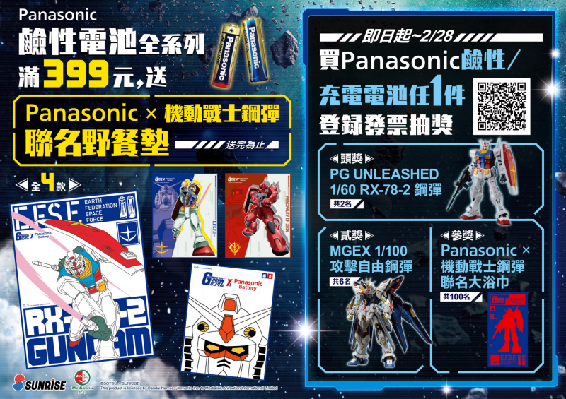 以上就是這次 Panasonic Battery 與《機動戰士鋼彈》聯名活動的資訊,鹼性電池與充電電池各有相對應的活動贈品,各位玩具人再根據自己的需求來入手囉!想看更多相關的訊息,記得追蹤官方粉專喔~