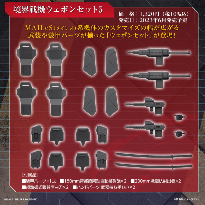 此組套件中包含一套增設裝甲、180mm背部懸架型自動擲彈砲X2、200mm戰鬥杭射出機X2、超熱振式戰鬥彎刀X2、持武器手掌零件(左)X2,採用深灰成形色製作,能夠搭配《境界戰機》的 MAILeS 系機體進行改裝,特別以外傳主角機「白雉」為主體更能再現外傳《境界戰機 Frost Flower》最終決戰時登場的全裝甲規格!