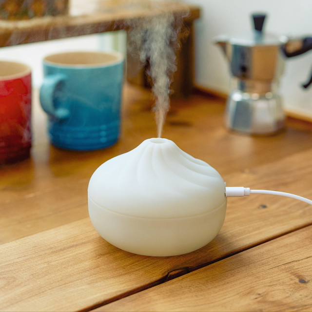 這次的「仿肉包造型加濕器」由中村屋認證,確保包子的外型能夠還原店內模樣,包含皺褶跟收口處,都與真的包子相差不遠,模仿得維妙維肖。